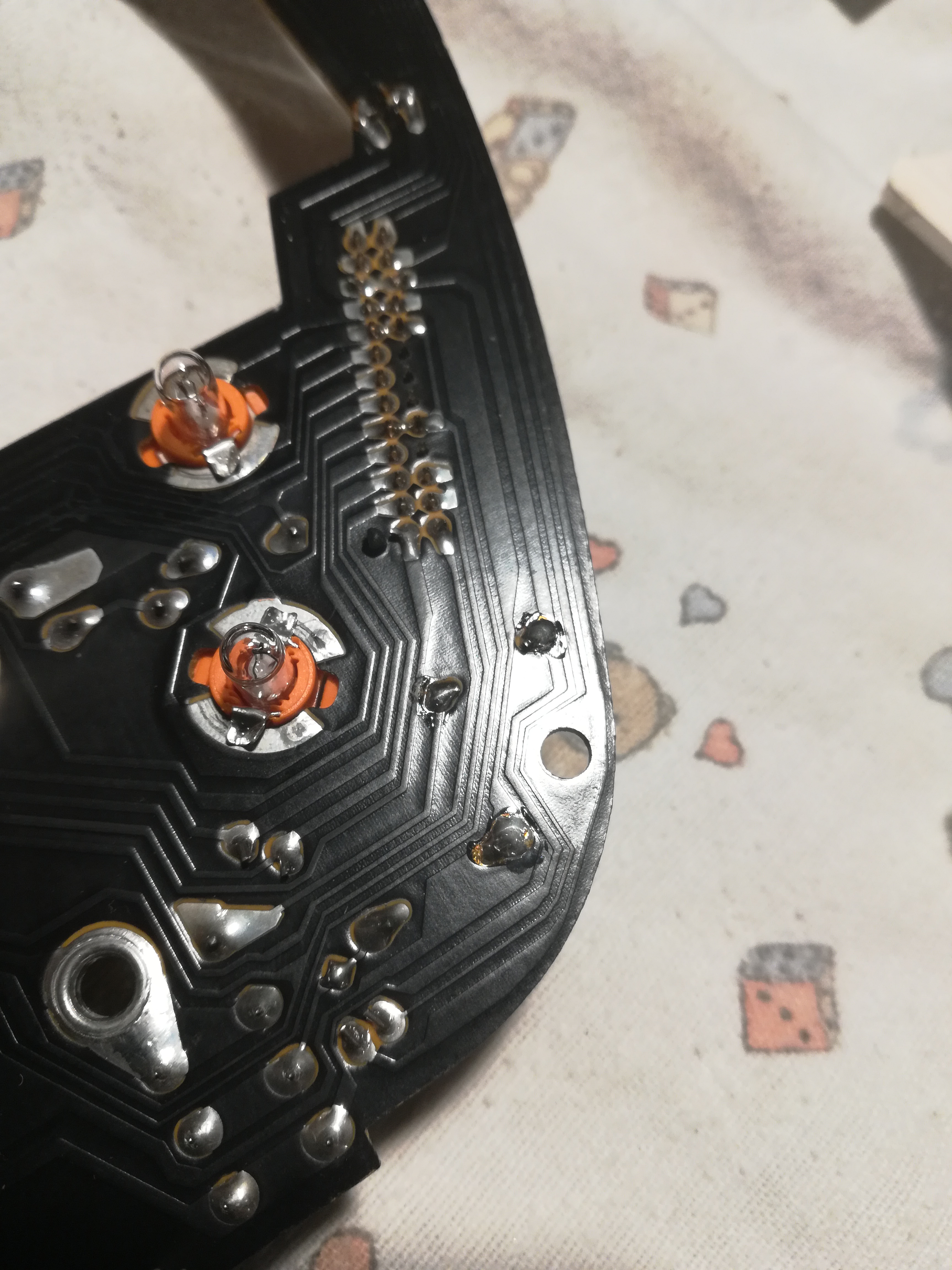 Werd mich nochmal hinsetzen nach der Arbeit, gehen tun alle Beleuchtungen auch zusatz Instrumente. Habe jetz auch mal den silberleitlack wieder weg gekratzt, das Zeug außem Conrad taugt irgendwie nix hab ich so das gefühl. Werde berichten. Danke fuer den neuen Input
