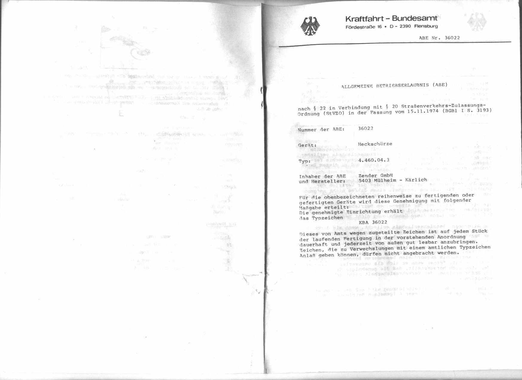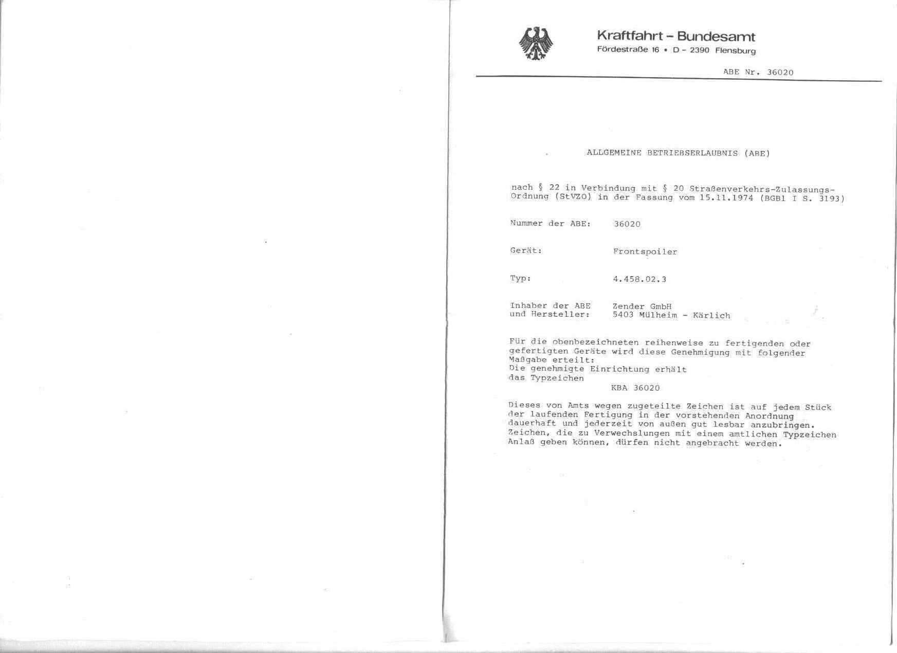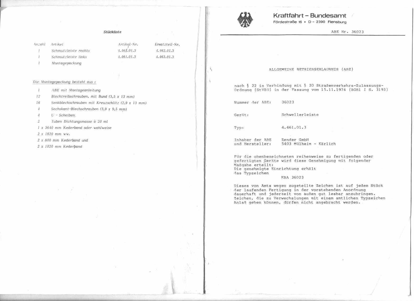 - Thema: Suche ABE/Unterlagen Kamei + Zender