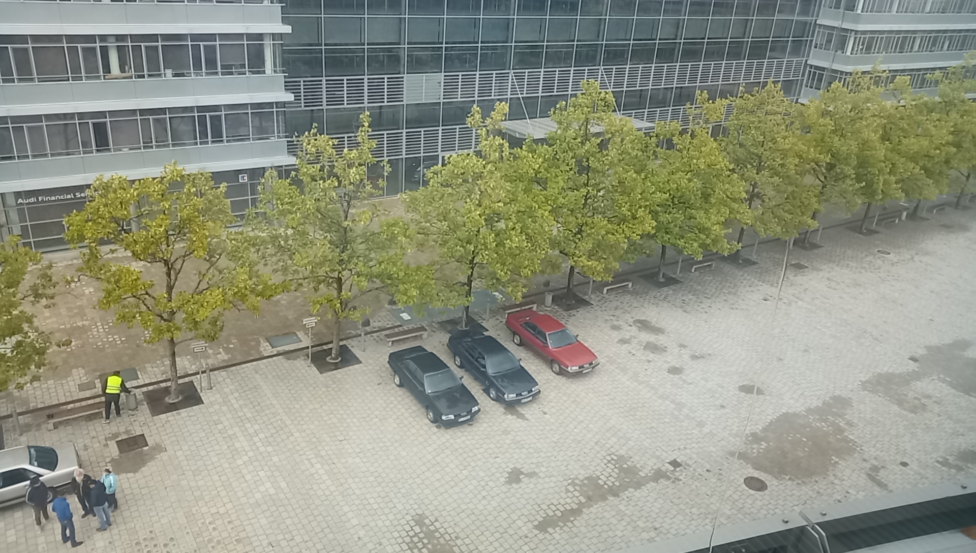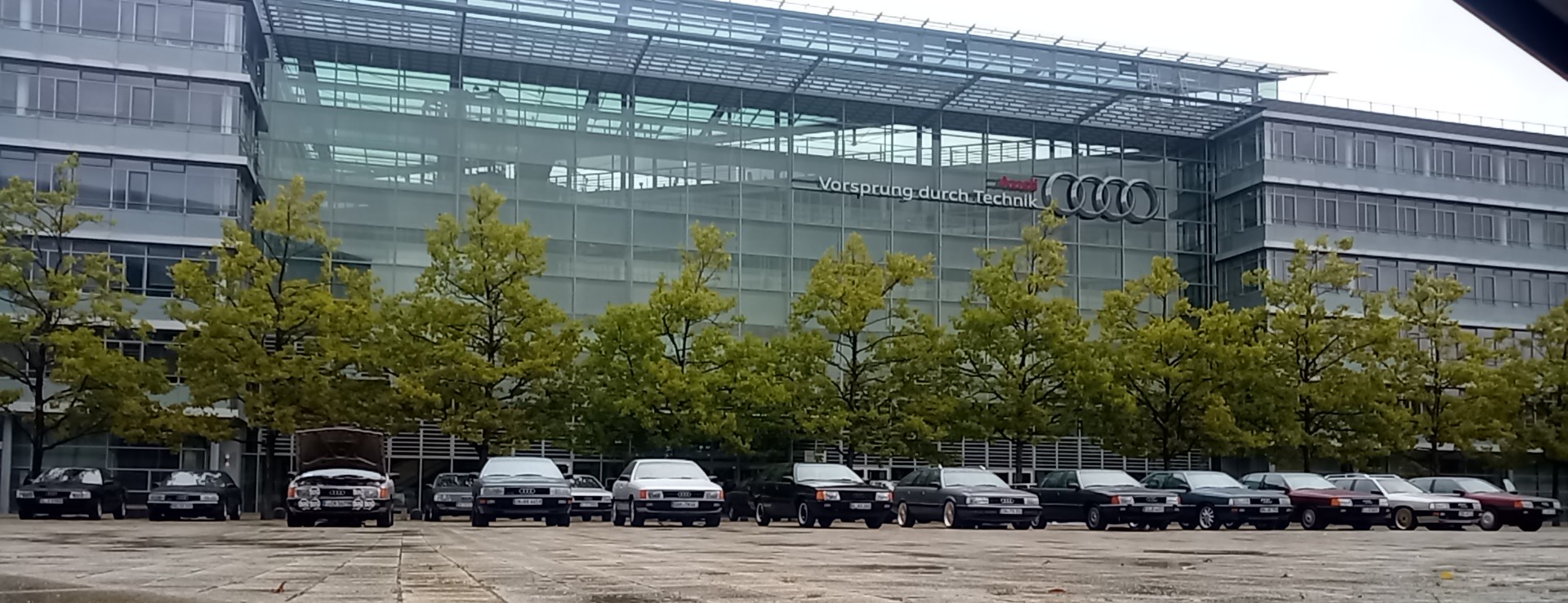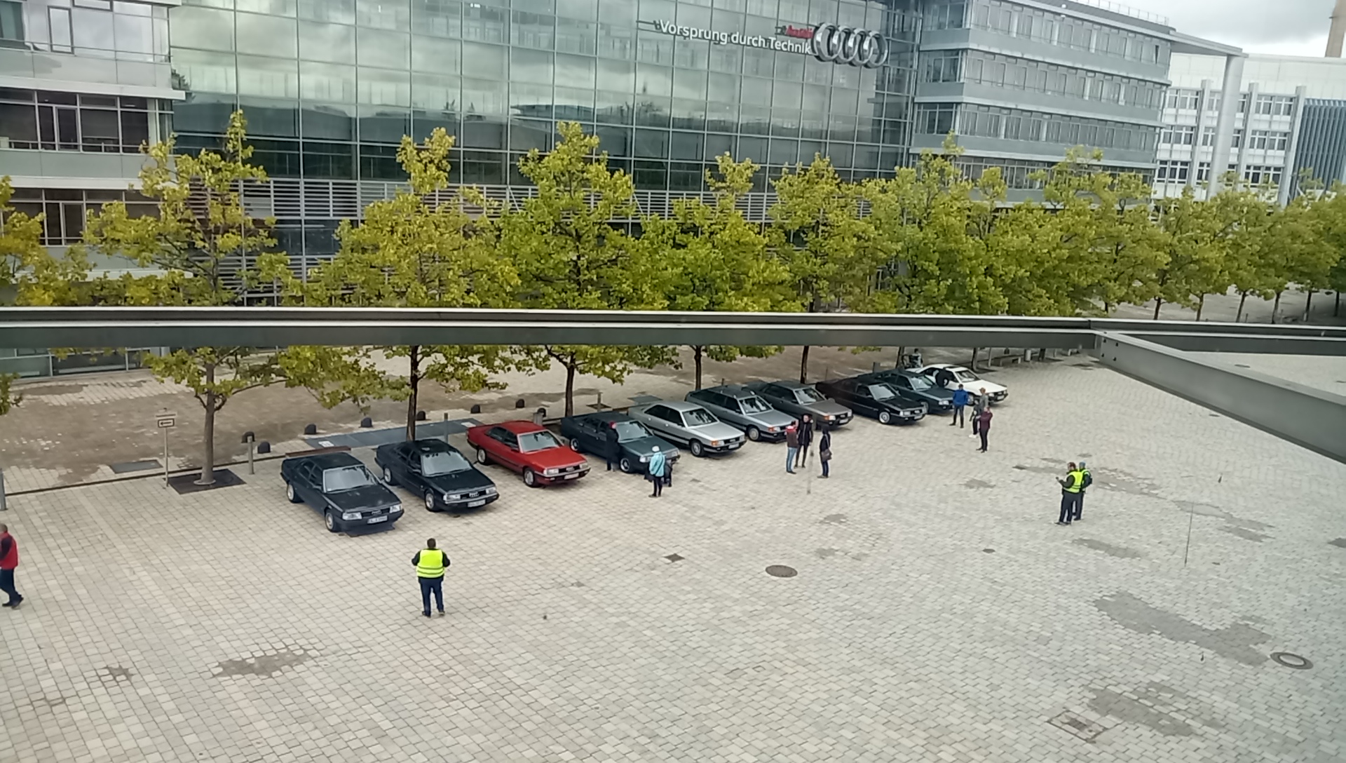 Fuhrpark: Audi V8 3,6 D11, C3 200turbo (KG) VFL, C3 100 Avant 2,0 (RT) FL, C4 (AAE), B4 (ABT), und weitere, ältere Vierberingte (ab 1960).