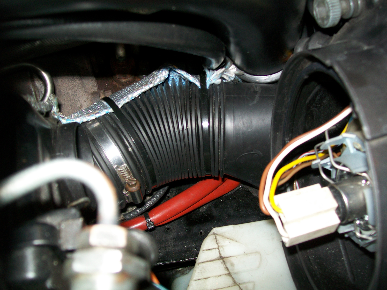 Um den runden Teil - der zum Luftfilter geht - muss natürlich Hitzeschutzband drum, sonst kokelt das Teil irgendwann weg.