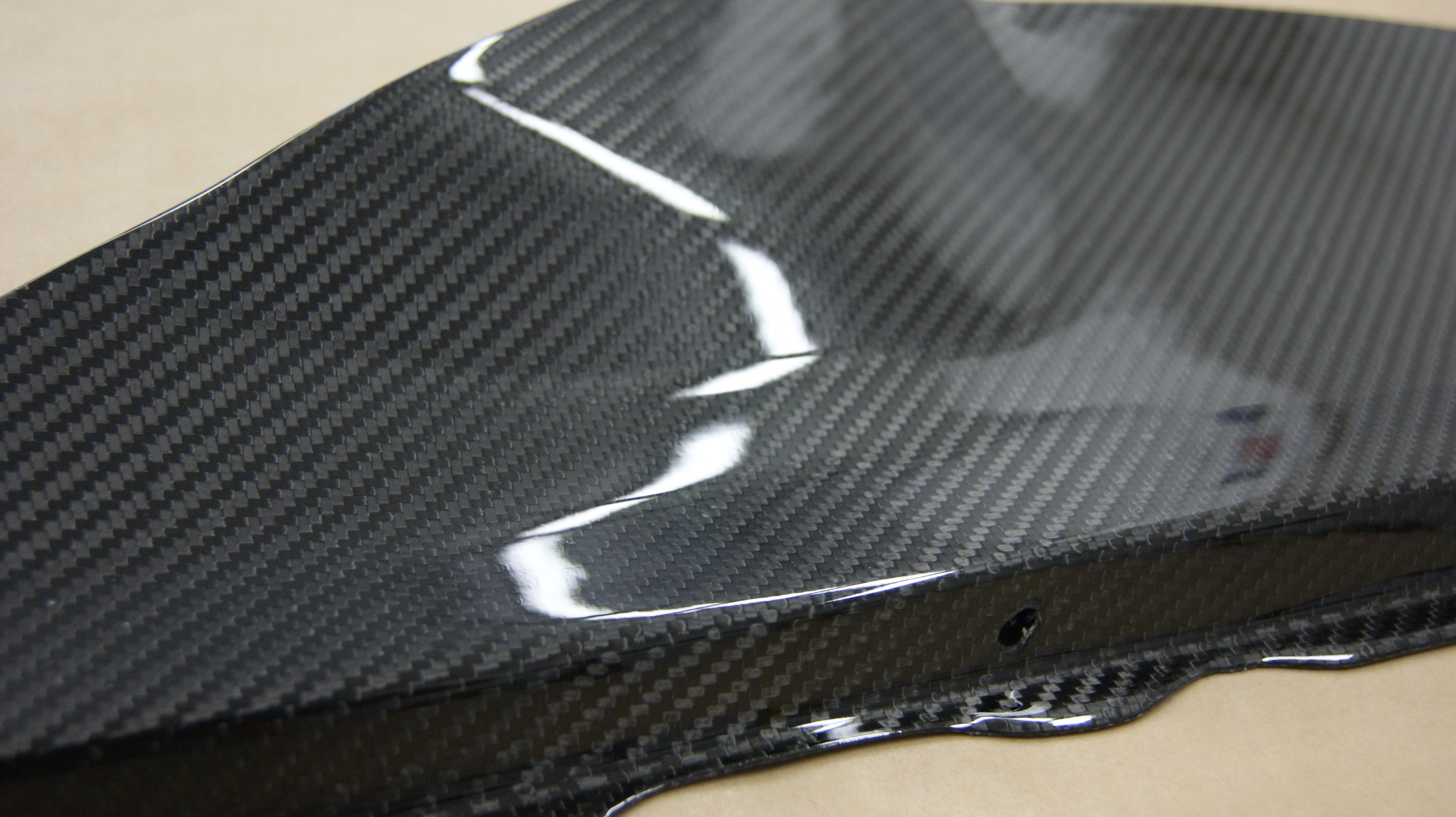 Momentan haben wir eine veränderte Wasserkühlerabdeckung aus Carbon und aus Kevlar/Carbon gefertigt und eine Zahnriehmenabdeckung für das große verstellbare Nockenwellenrad mit der Hallgeberaufnahme.