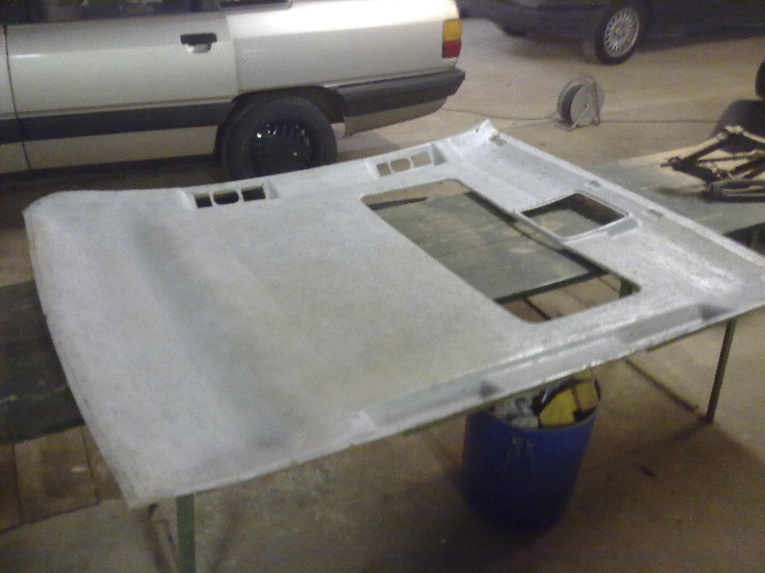 Ausserdem hat er den Himmelbezugsstoff entfernt, weil dieser herunterhing und den Himmel dann versucht zu lackieren!