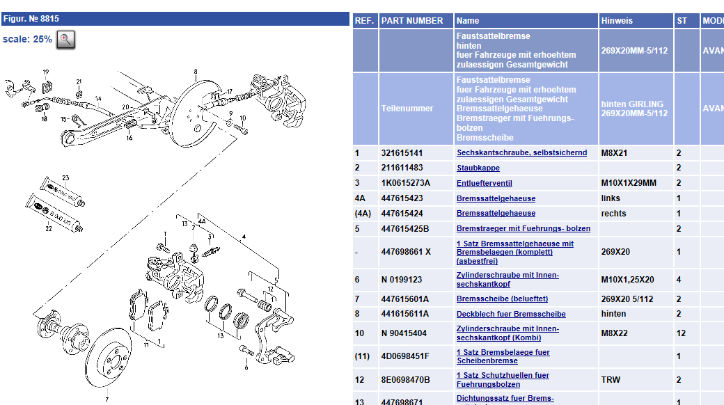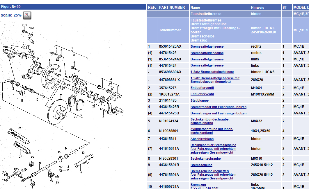 Bis auf die Befestigungsteile für den Sattelträger (Schrauben 50 bzw. 20 lang) und Handbremsseile sind alle BremsTeile identisch :wink: