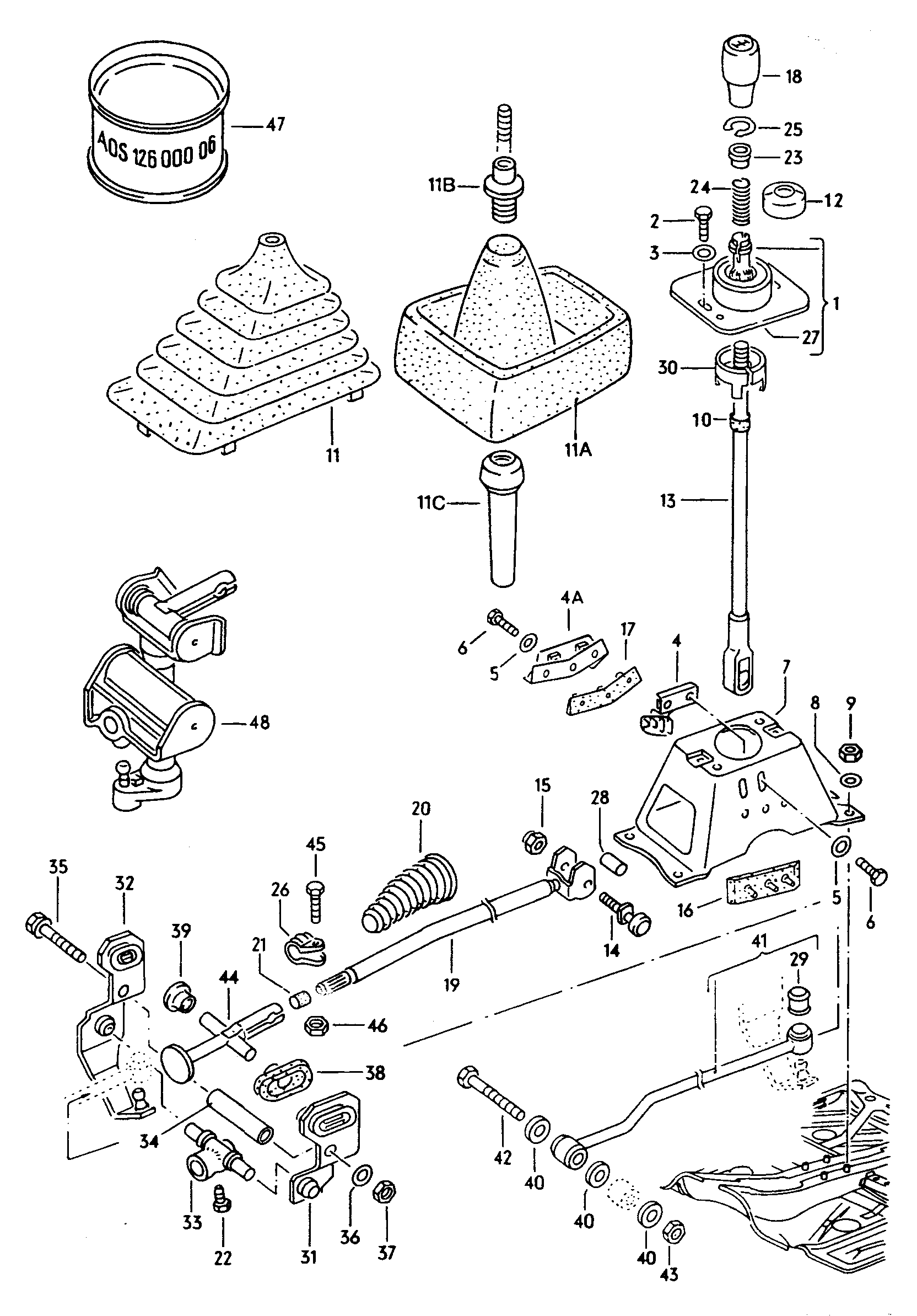 Die Ursache war die defekte, oder besser gesagt, die zerbröselte Kugelpfanne am Schaltgestänge. Mittlerweile weiß ich das sowas öfters beim B2 vorkommt. Hier isses die Pos. 29