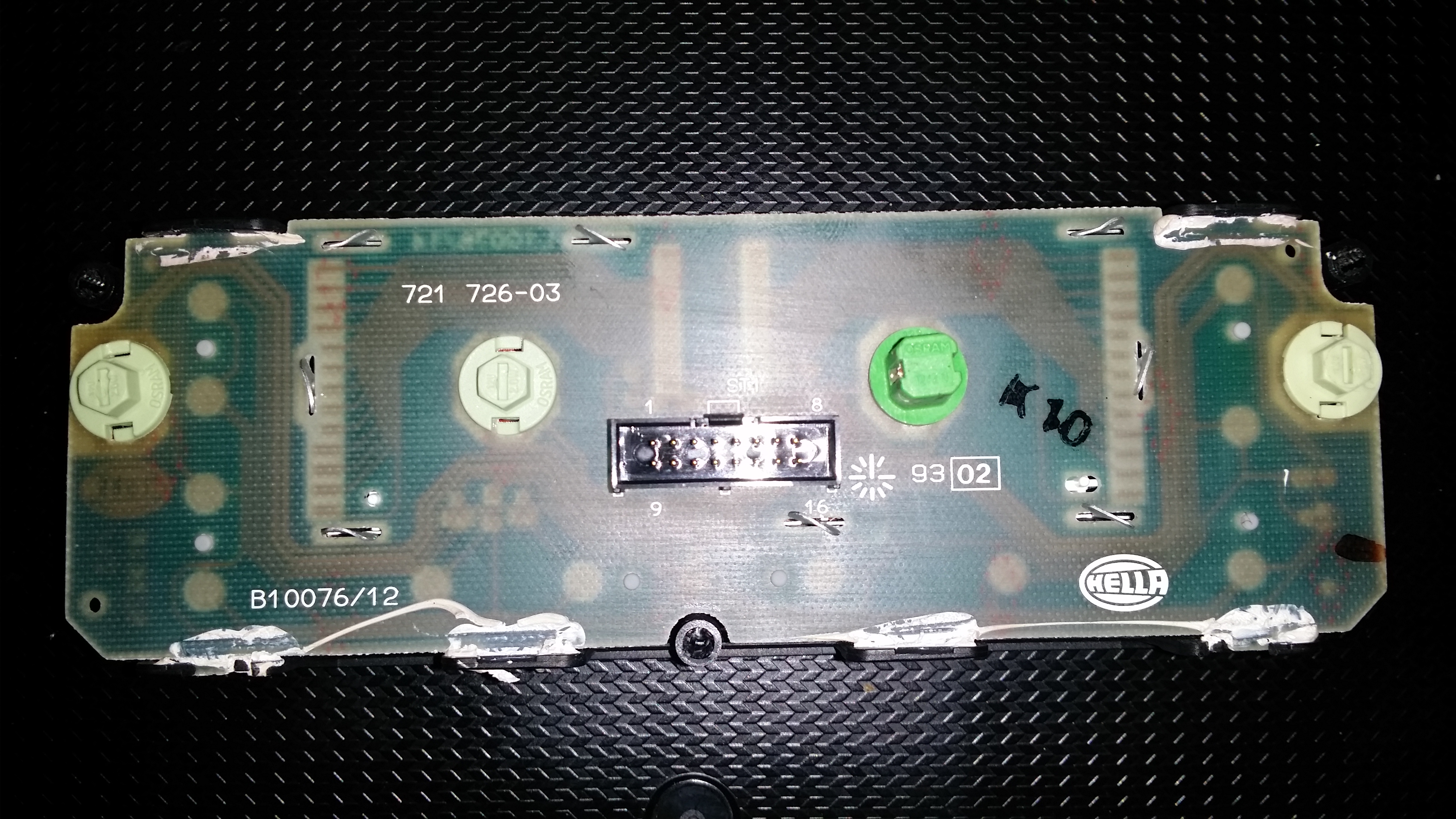 Tach, da der Winter kommt habe ich mir mal das Bedienteil meiner Klima vorgenommen. Im Winter die Luft beim Losfahren nicht zuverlässig auf die Scheibe lenken zu können ist nicht besonders spassig. Vor allem weil es bei mir im C4 auch gerne mal feucht wird - weiss nicht genau ob es vom Dach kommt oder der undichten Frontscheibe (die Werkstatt des Vorbesitzers war da besonders öhm zuverlässig). Wahrscheinlich Dach.