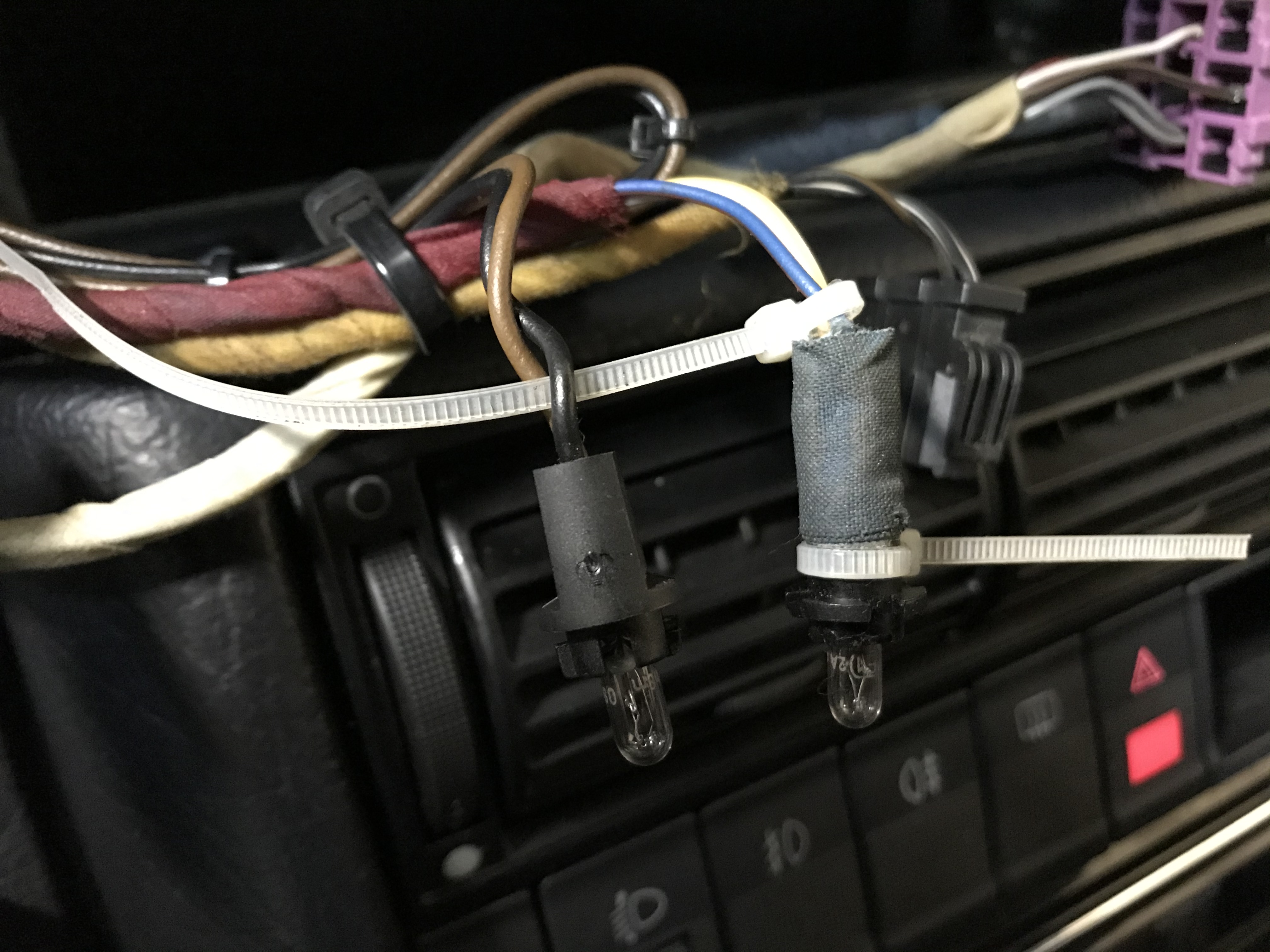 Hab das KI gerade ausgebaut. Hab auch zwei Lämpchen rausgedreht, mir aber leider nicht gemerkt wo die drin waren. Eines ist die Kontrollleuchte vom Blinker, aber die andere?