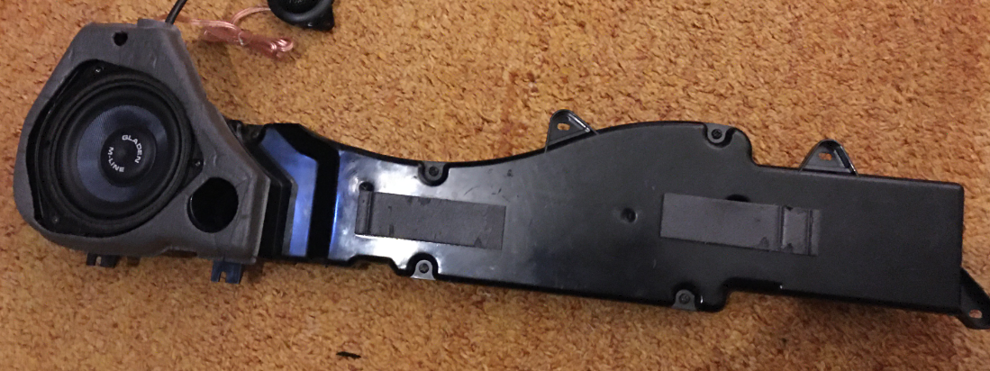 So meine Anlage ist jetzt verbaut. Musste noch etwas ändern und jetzt fehlt nur noch der Subwoofer ( der noch nicht fertig ist ) und die Endstufe muss noch befestigt werden und an die Batterie geklemmt werden.