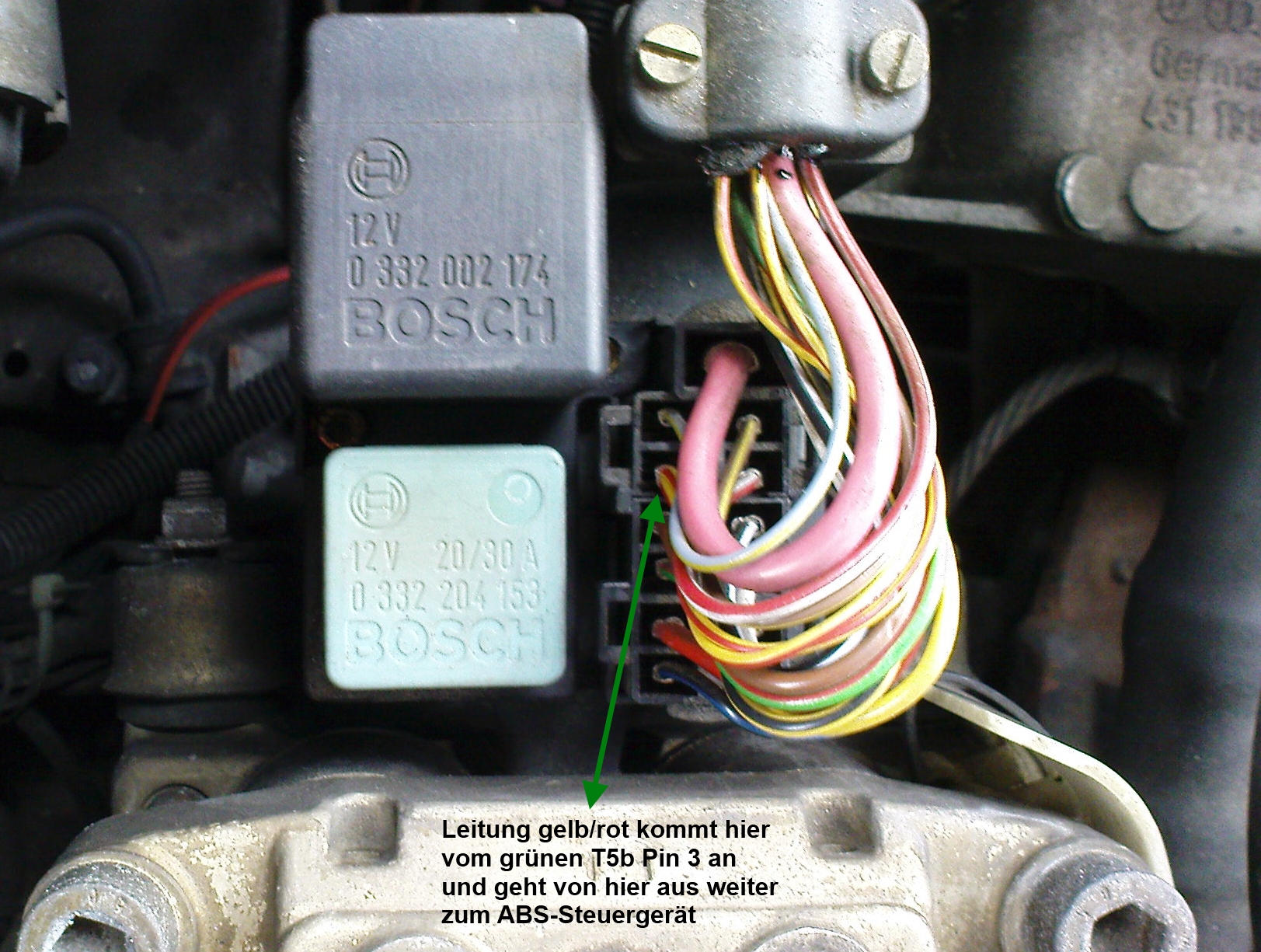 hier mal zwei Bilder zum verfolgen dieser Leitung ab Zusatzrelaisträger (T5b grün) zur Hydraulikeinheit.