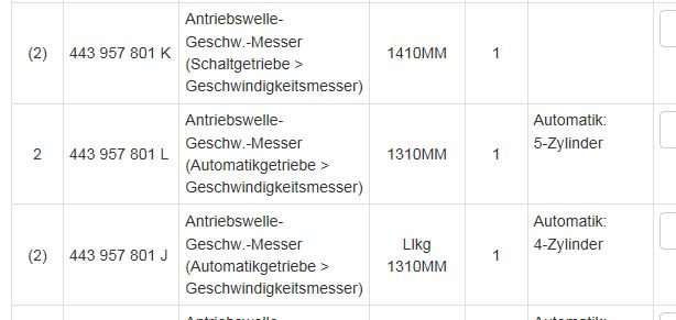 Leider gibt es die Welle die ich brauche (443 957 801 L) nicht mehr, für Schaltgetriebe (443 957 801 K) bekommt man aber noch gut Ersatz.