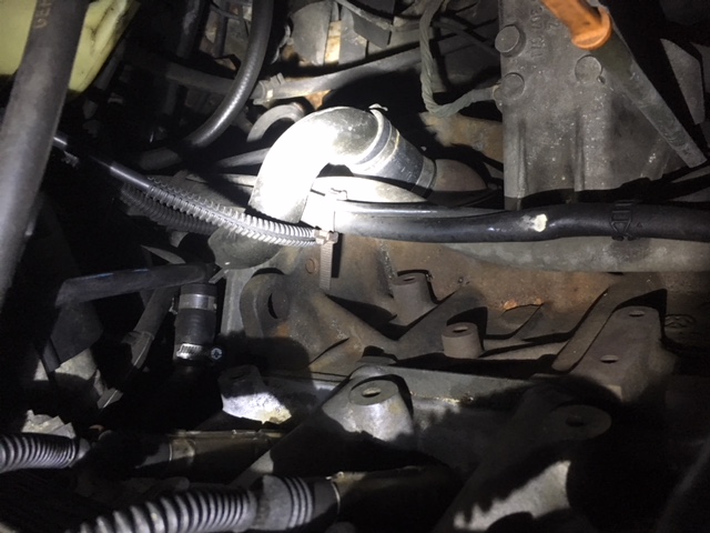 Zur Entlüftung gehören die Halterung des LLRV, das Rohr runter zum Motorblock und das Rohr welches zum Luftfilterkasten führt