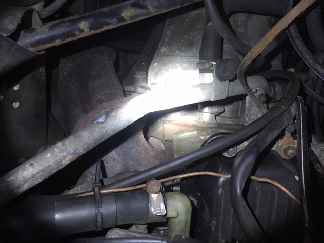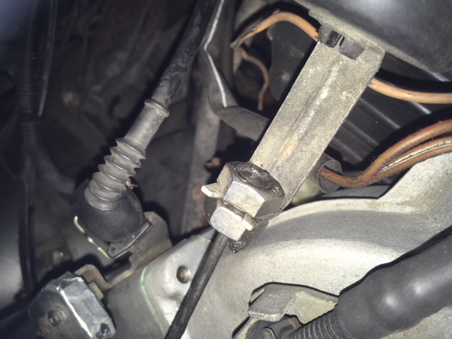 Die Stange hängt auf der einen Seite an der drosselklappe