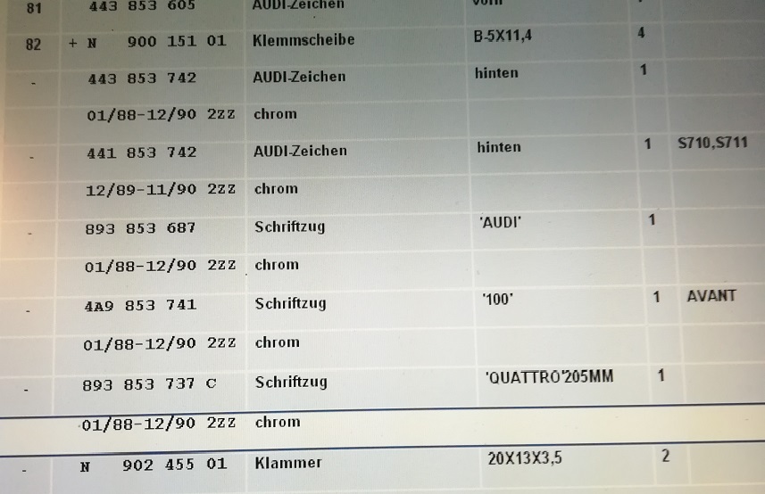 Was meinst Du? Die Audi-Ringe? Ich hab keinen Quattro Schriftzug im Kühlergrill. Allerdings weiss ich nicht, ob das so Serie war. Der Vorbesitzer hatte vorne rechts einen kleinen Rempler und da kann es sein, dass auch ein anderer Kühlergrill rein kam.