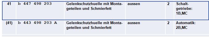 Wenn du den 200er Avant mit Bj.89 auswählst, ist die Teilenummer nicht mehr gelistet für den Manschettensatz und für das Gleichlaufgelenk.