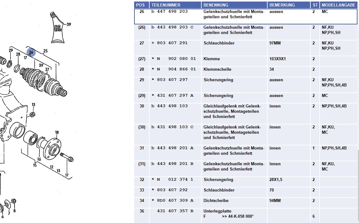 Für den 100er Avant Quattro ist es die Nummer 447 498 203 bzw. 443 498 203C