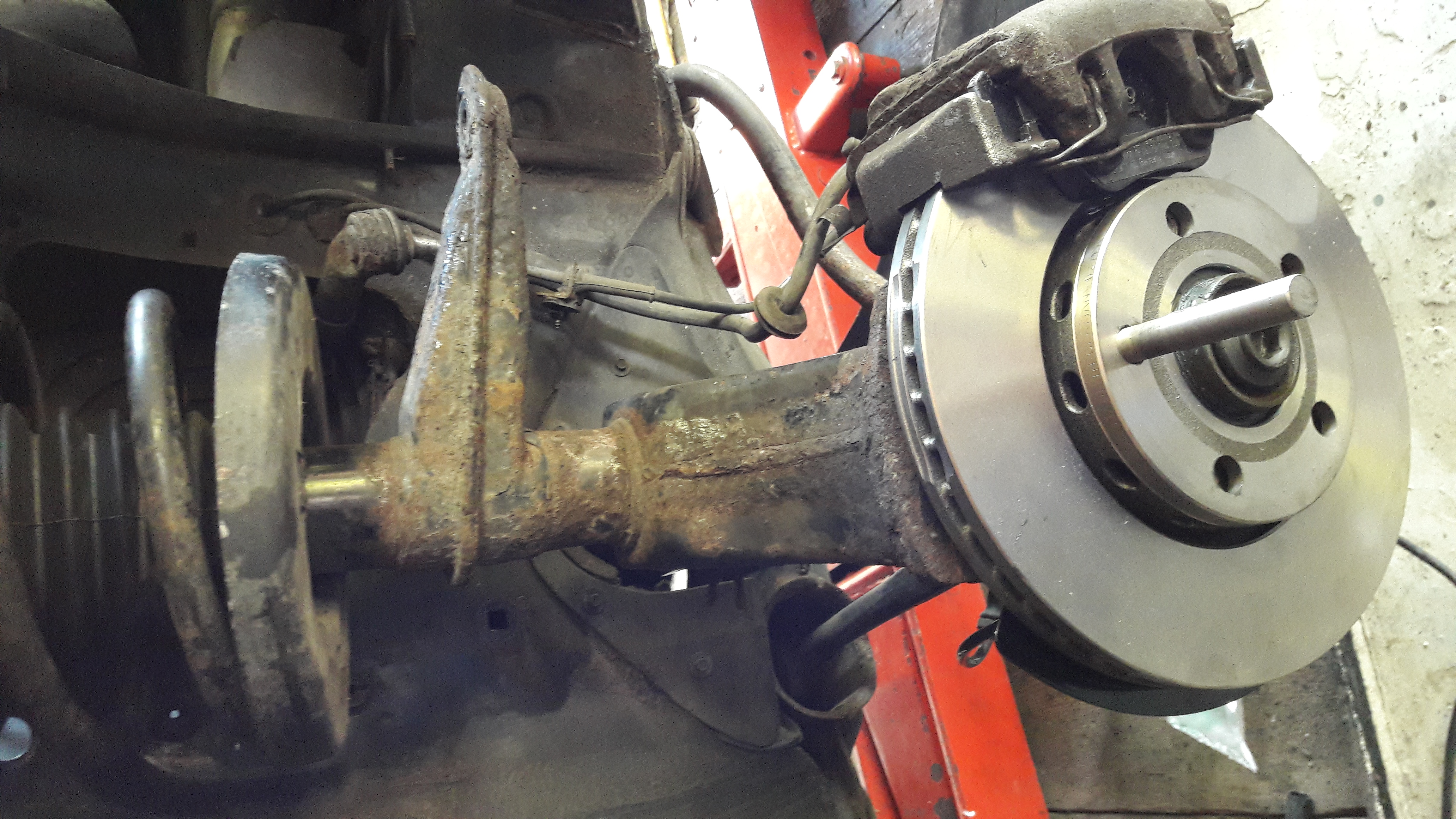 Zum Tost für uns kommt die eher simple Bauart der Serienfahrwerke uns heute entgegegen, weil beim Fronti nicht viel kaputt gehen kann...Vorderachse 6 Gummilagerpunkte + Domlager, Hinterachse 4 Gummilager. Ich glaube noch einfacherist nur ne Starrachse mit Blattfedern :D