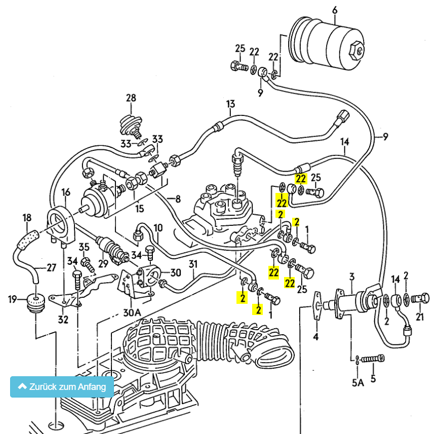Übrigens ist es möglich das die ersten km eine kleine Menge Kraftstoff am Mengenteilersteuerkolben vorbei in Richtung des Luftfilters gelangt. Das sollte aber nur nach langer Standzeit möglich sein, und die Menge ist gering und wird mit der Ansaugluft wieder der Verbrennung zu geführt.