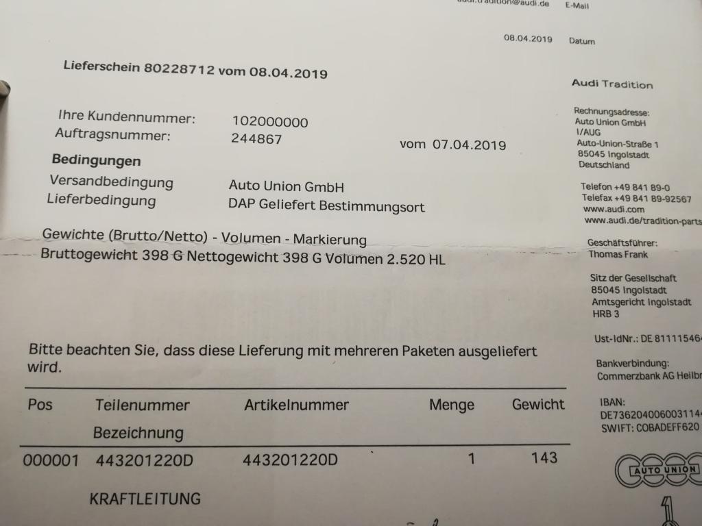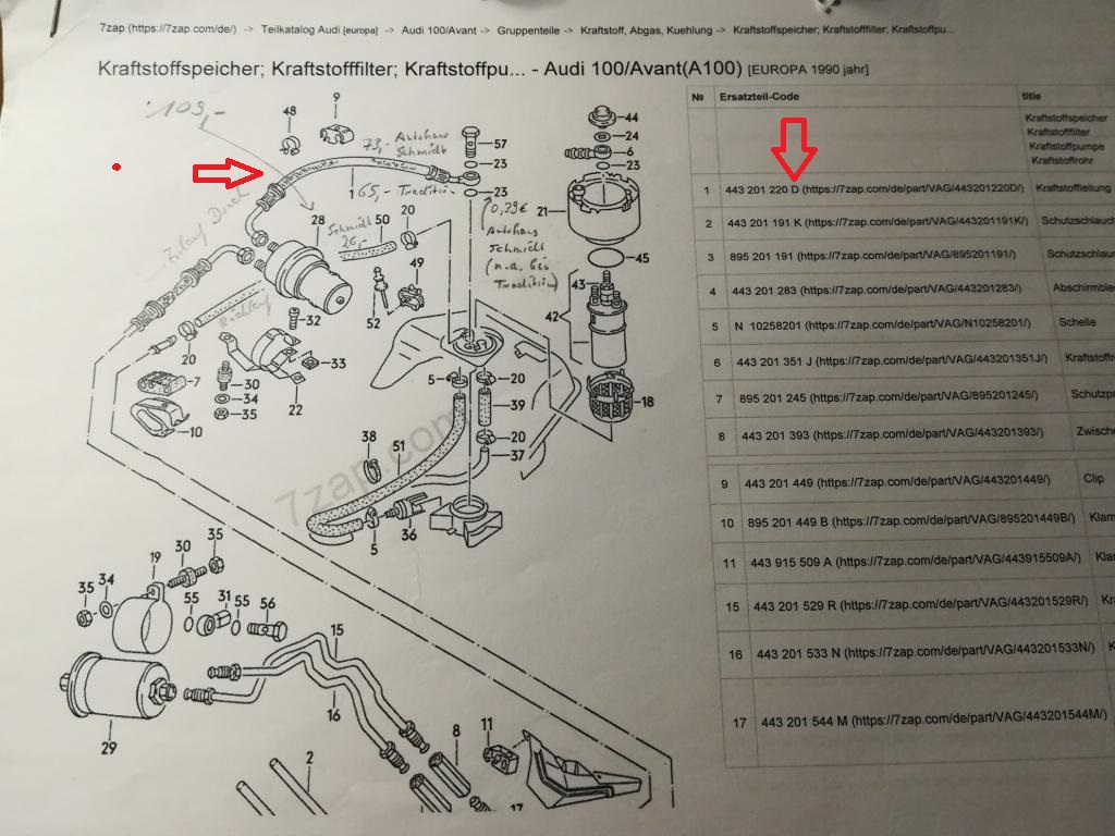 - bei Audi Tradition gibt es noch die Anschlussleitung (443201220D) Kraftstoffspeicher zur Benzinpumpe zu kaufen.