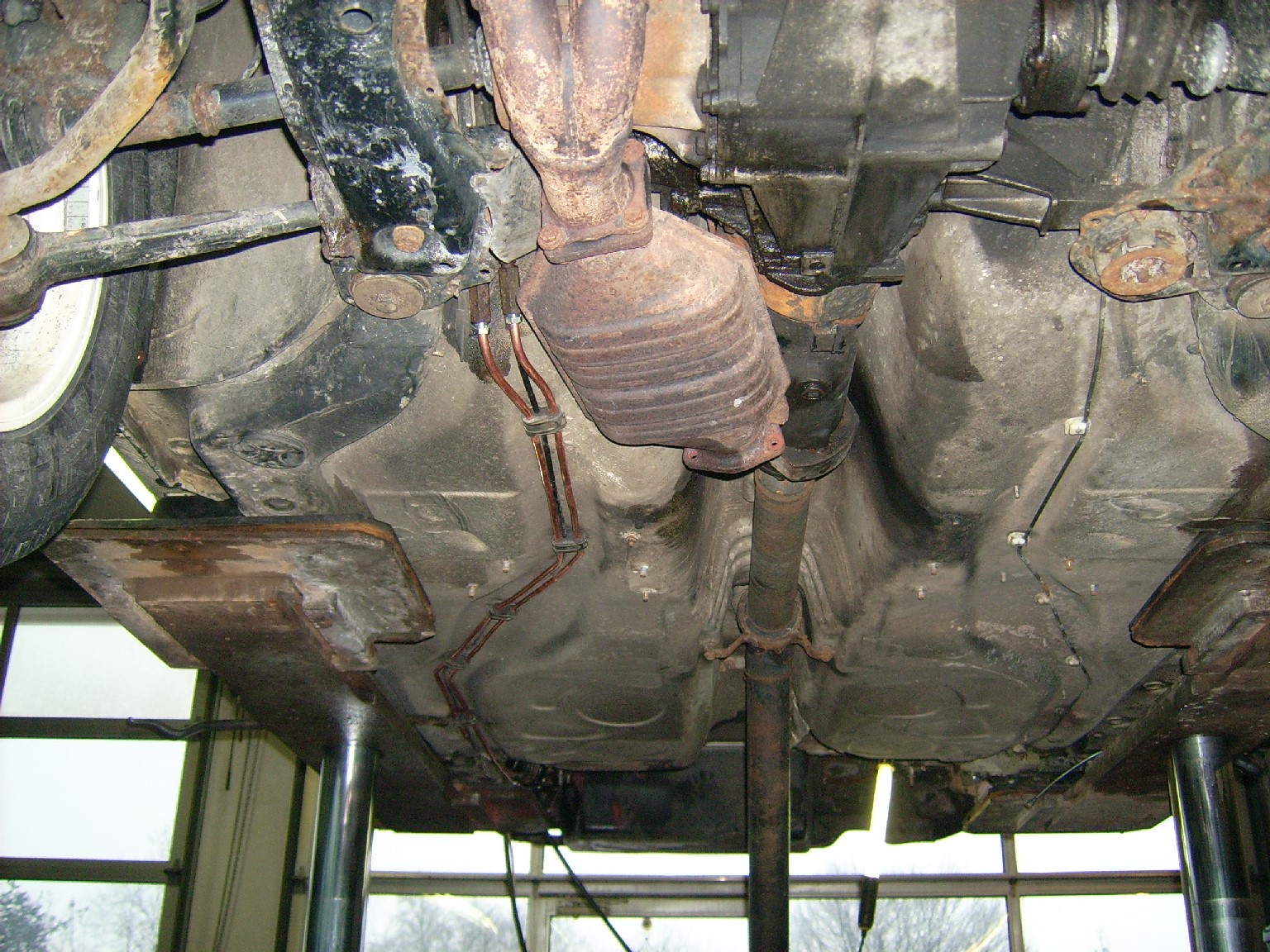 Problematisch ist der Bereich über der Hinterachse. Dort kommp man an den Druckspeicher kaum ran und die Leitungen sind extrem angegammelt.