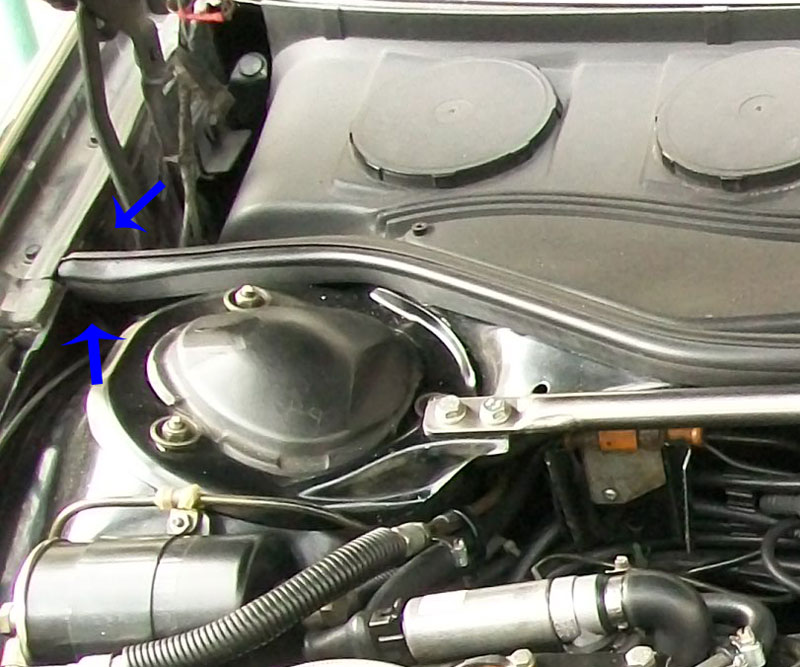 Konkret geht es um den Blechfalz an der Spritzwand auf dem die querliegende Dichtung zw. Motorraum und Wasserkasten angebracht ist, sowie die Befestigung Radhaus an Wasserkasten an der Stelle.
