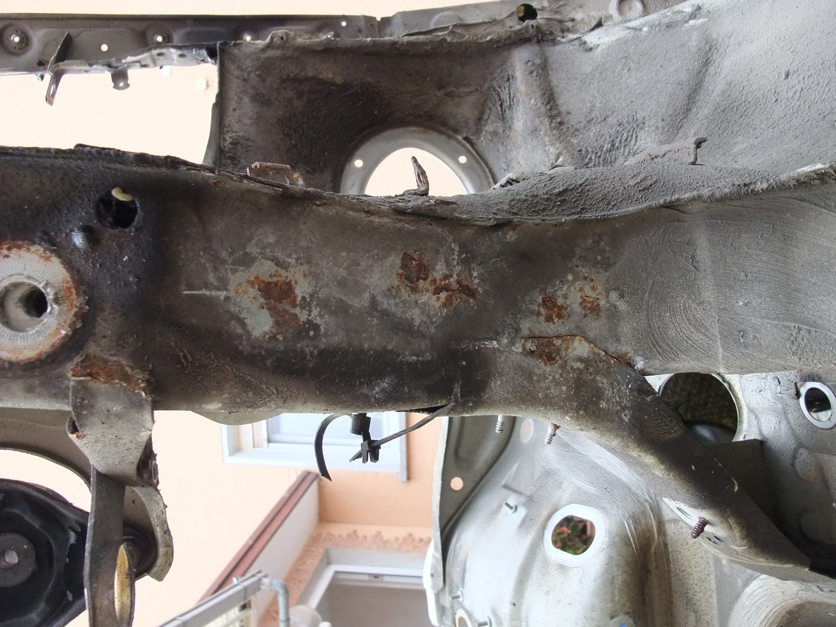 Jedenfalls ist dies ein ernstes Problem, da damit im Prinzip die gesamte obere Federbeinaufnahme keine Stabilität mehr hat und zudem dort nur schwer geschweisst werden kann. Vermutl. würde im Fall einer Rep. Schweissung dann womöglich das Blech neben den Schweisspunkten reissen.