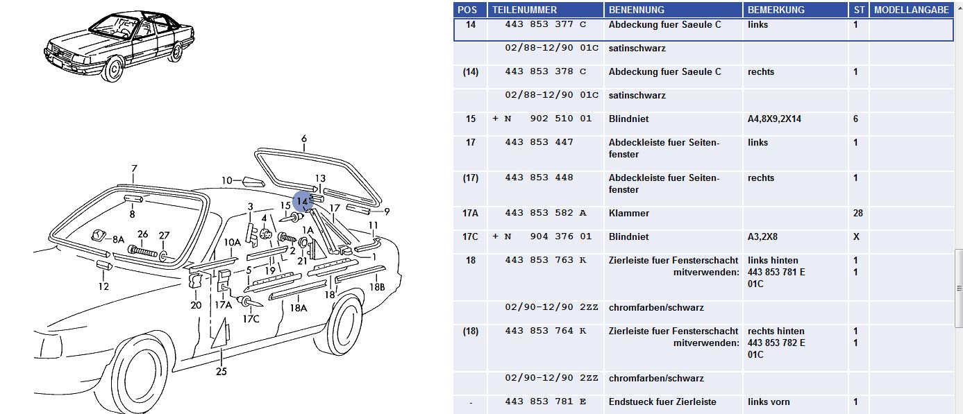da bei meiner Limo von 1984 einige Lackierarbeiten anstehen, bin ich auf den Gedanken gekommen das komplette Auto lackieren zu lassen. Deshalb bin ich momentan auf der Suche nach allem was beim demontieren kaputt gehen könnte bzw. schon kaputt ist.