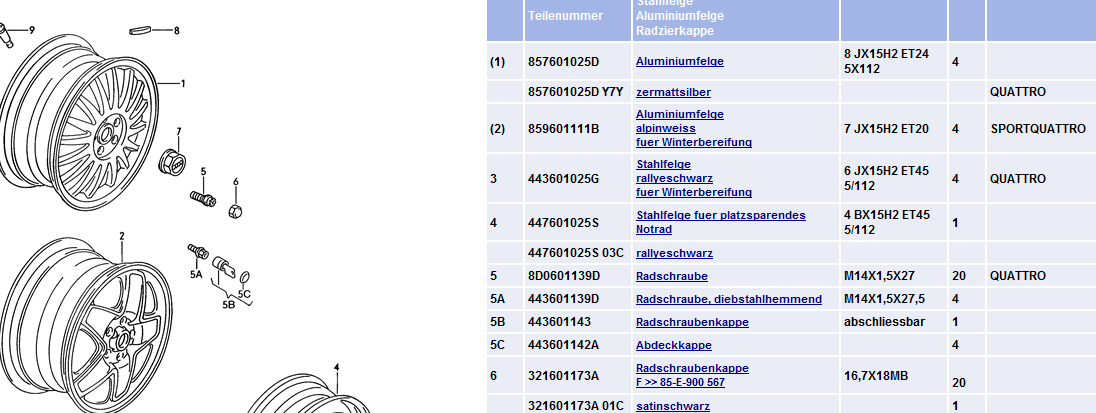 ist zwar schon etwas her, aber meine Fuchs Felgen haben eine 447er Teilenummer die Größe ist aber auch 7x15