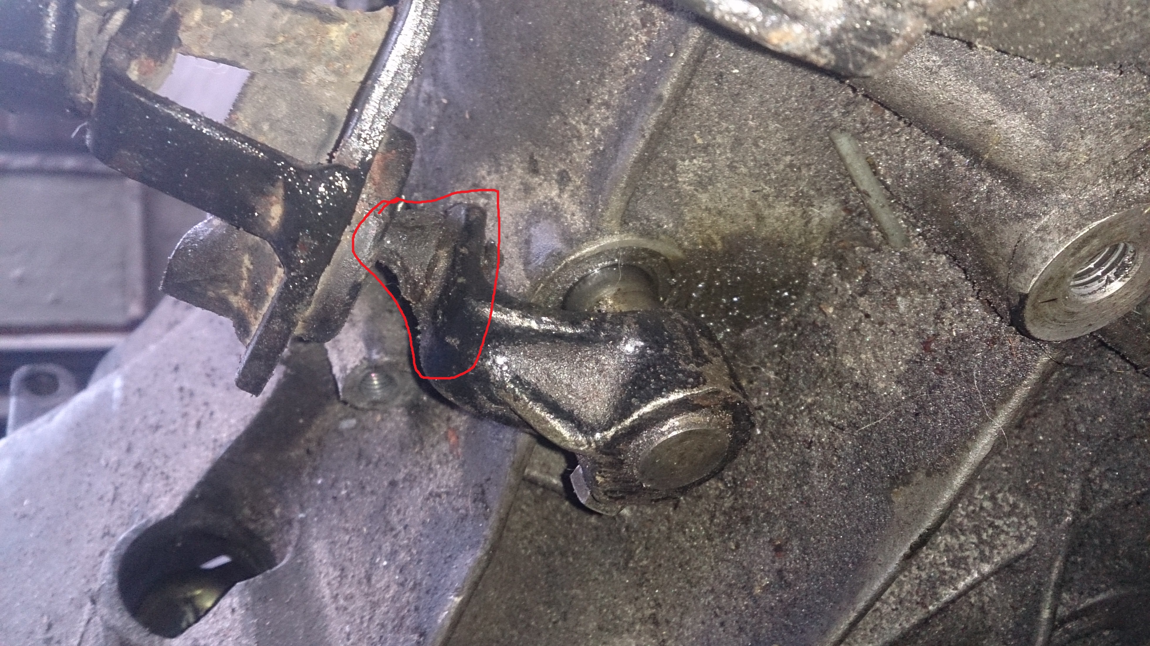 Auf der Welle, die dort aus dem Getriebe kommt steckt das Teil, was ich meine. Und da ist oben nen Kugekopf dran, der allerdings nicht mehr fest damit verbunden ist, sondern stark rum wackelt.