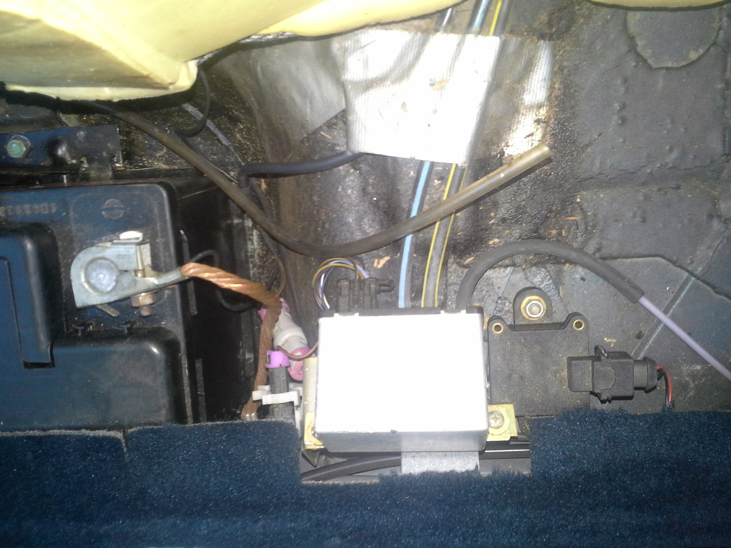 Beifahrerseits Batterie und Unterdruck-Steuergerät.