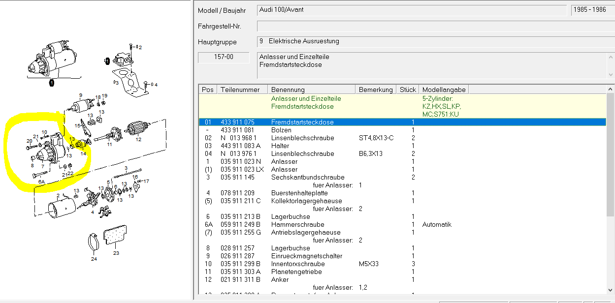 Ich habe nach Anlasser für den 100er Bj.'85 (siehe unter Avatar des Beitragserstellers) gesucht.