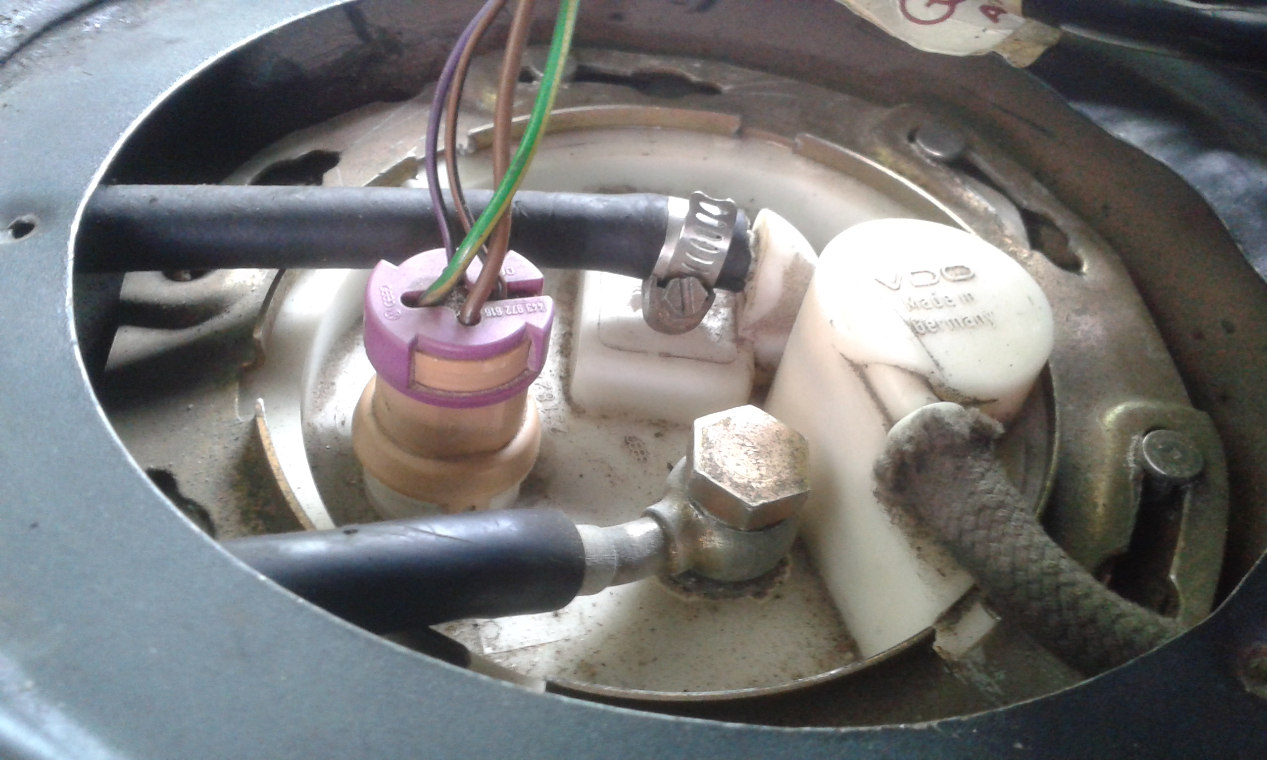 kann mir bitte jemand ein Foto schicken, das von außen die exakte Position des Tankgebers im Tank zeigt? Meiner ist wie abgebildet montiert, aufgenommen von der Rücksitzbank Richtung Kofferraum (Avant), und zeigt so am Instrument konstant nur ¼ Tankfüllung an. Alle meine Versuche den Tankgeber anders zu positionieren schlagen fehl, auch die, den Schwimmer in Fahrtrichtung nach rechts einzubauen. Da sind die Kabel der Pumpe im Weg (oder irgendwer hat die Pumpe mal gewechselt und falsch eingebaut?). Oder aber die Anschlüsse außen passen dann nicht mehr zu den Schläuche. Mein Audi ist ein 100er Quattro Avant mir NF- Motor, EZ 1989.