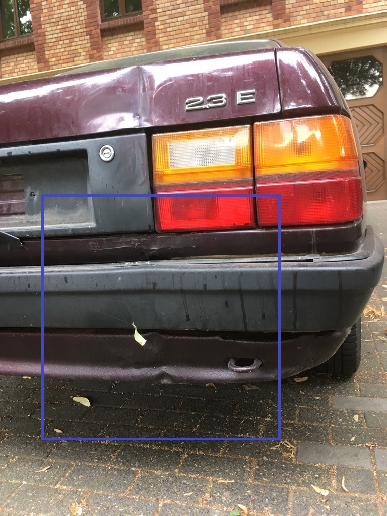 Neben der Heckklappe ist die Rückleuchte, die Stoßstange und das Blech darunter etwas in Mitleidenschaft geraten.