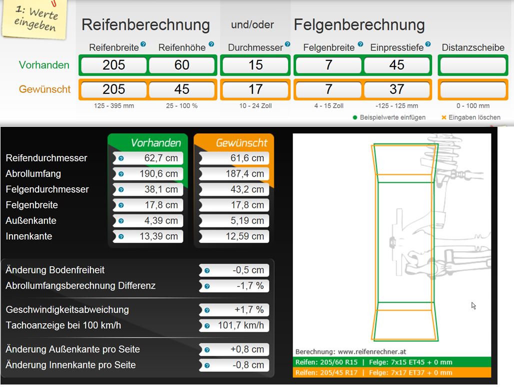 aber Vorsicht der Reifenrechner weiß nicht welche Reifengrößen es auch am Markt gibt :wink: