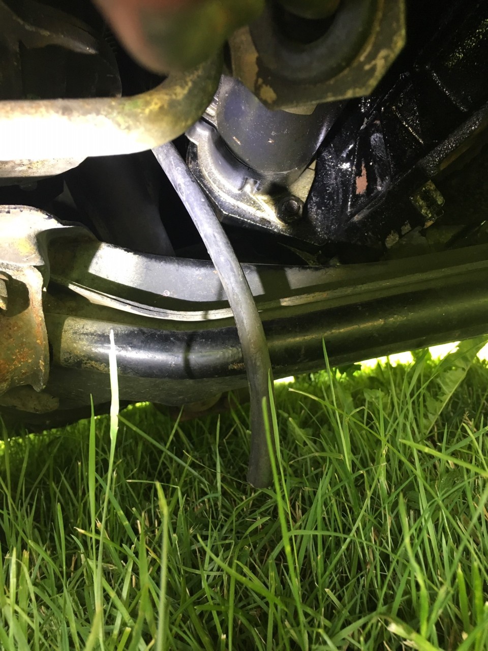 • Die MCII hatten ab einem gewissen Zeitpunkt auf der Ansaugbrücke - unterhalb der Einspritzdüsen zum ZK - eine Art Bassin um evtl. heruntertropfendes Öl der Ventildeckeldichtung oder Kraftstoff der Einspritzventile daran zu hindern, auf den heißen Krümmer zu Tropfen. Dieses Bassin hat durch die Ansaugbrücke einen Durchgang, an diesem ein Schlauch nach unten führt, um ein Überlaufen zu verhindern. Von der Position her, sollte dies dieser Schlauch sein.