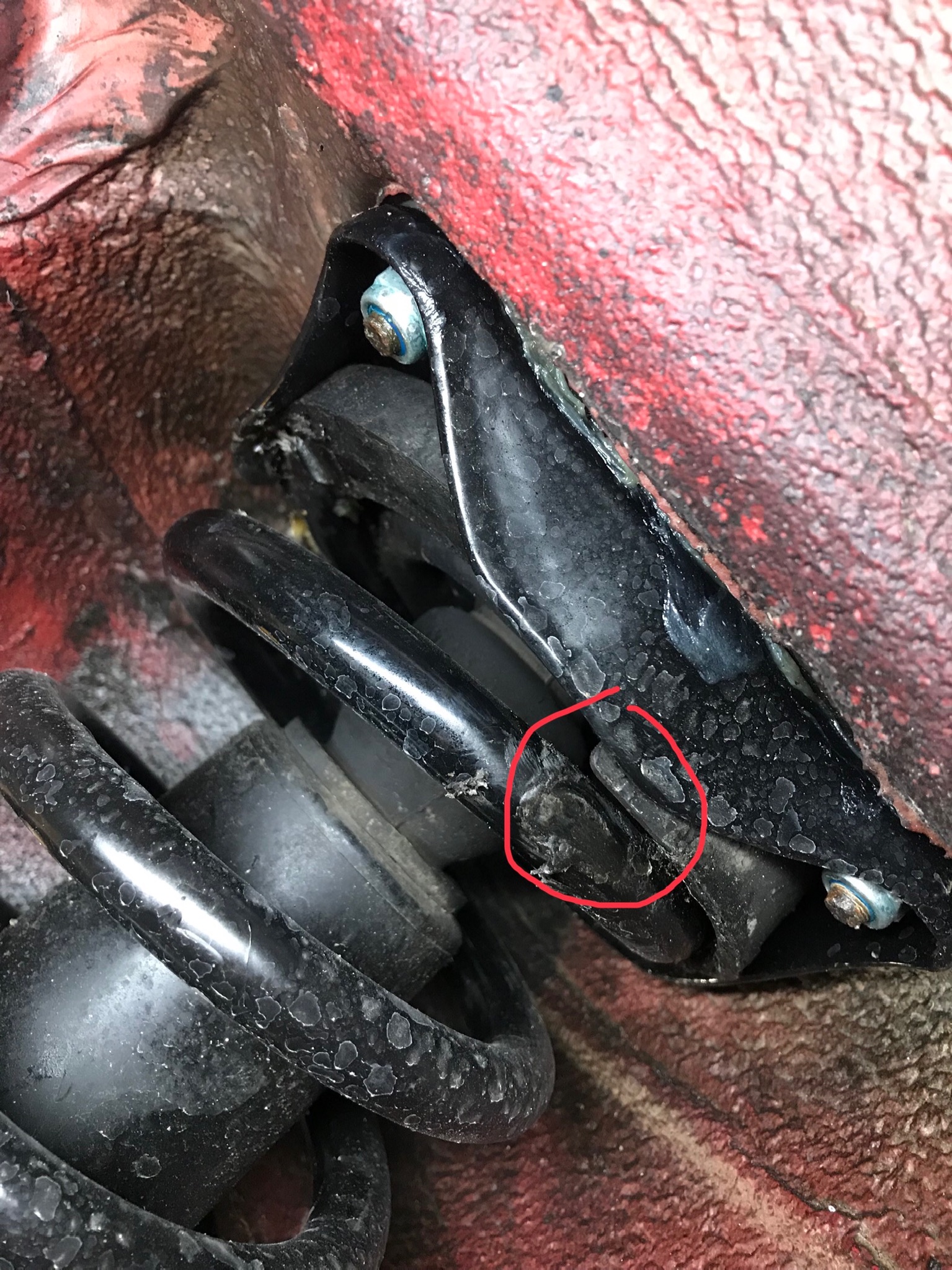 wenn ich das auf Deinem 2. Bild richtig gesehen habe, sitzt der Federanschlag auch nicht richtig im Gummi. Evtl hat sich die Feder durch das Schaben am Domhalter verdreht?