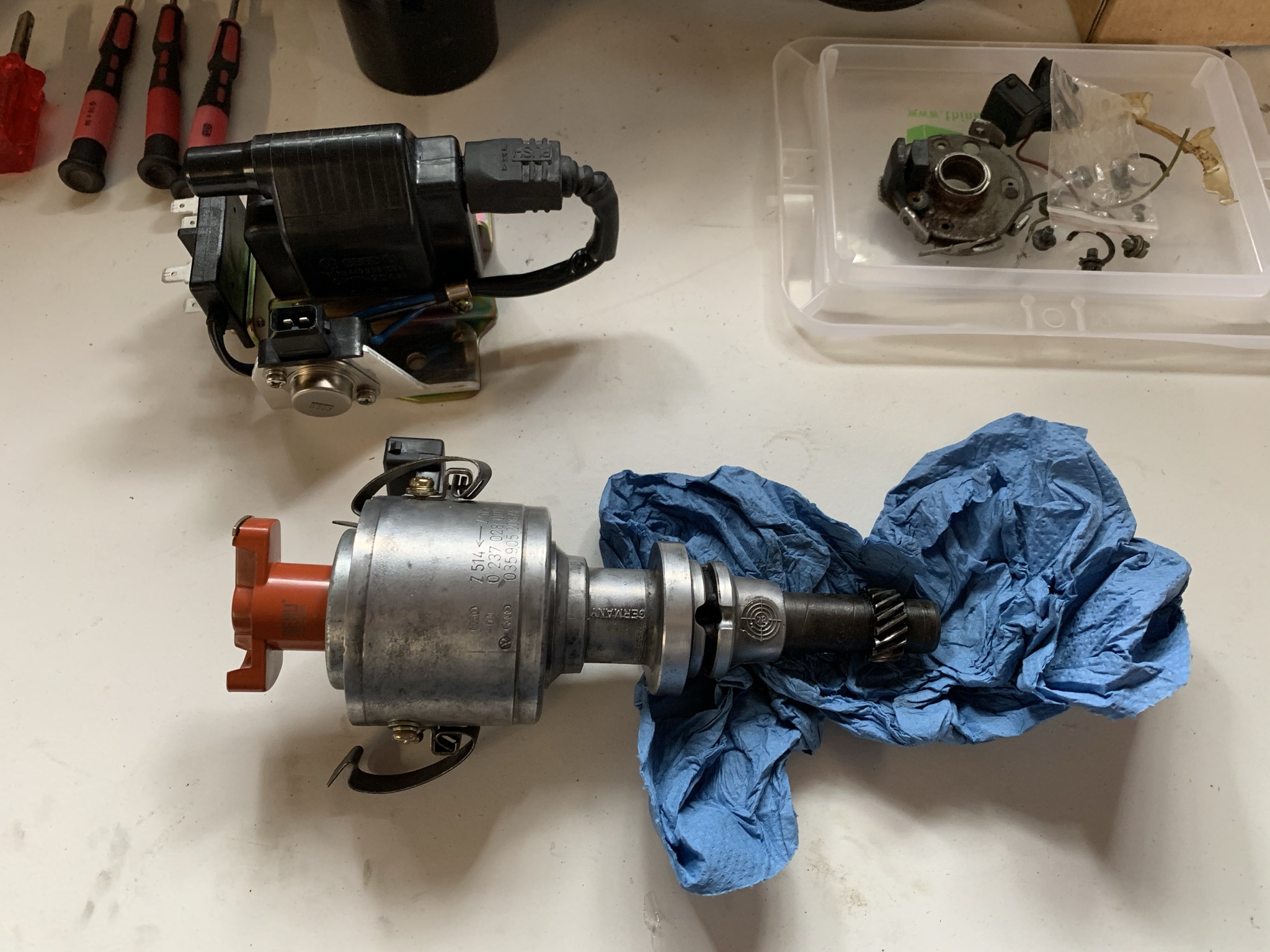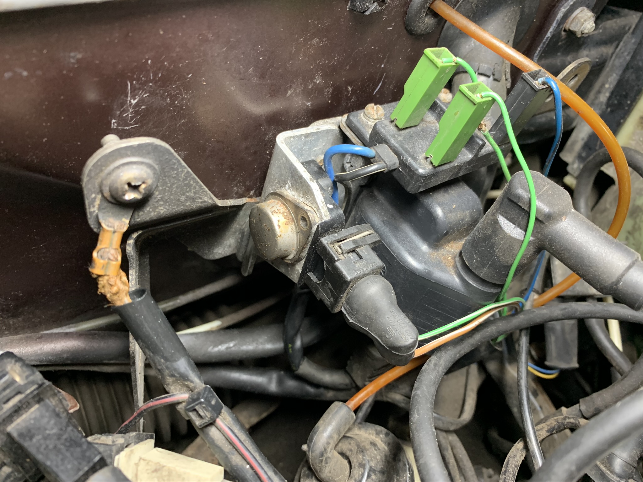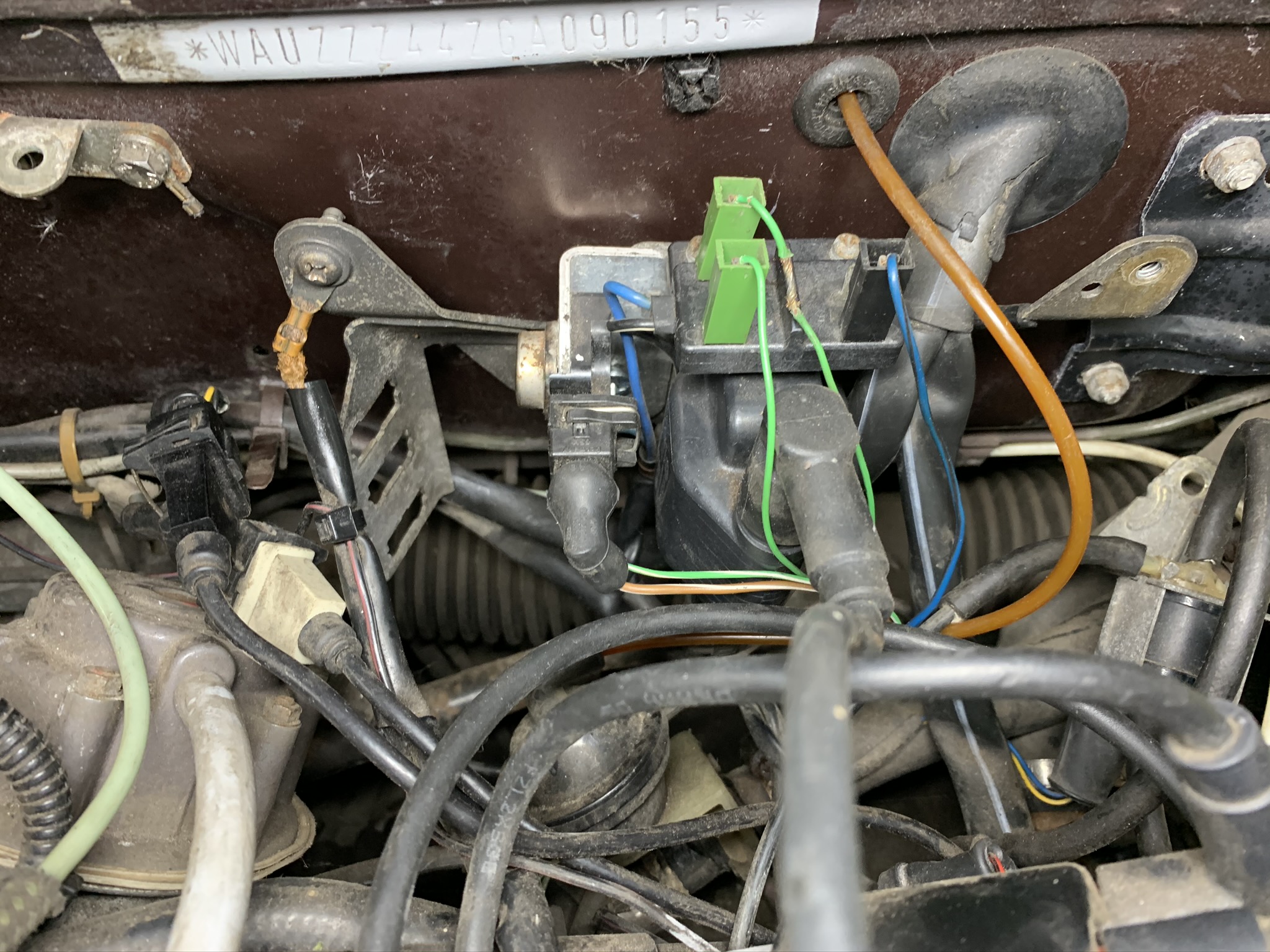 - 1. Verkabelung der Zündspule und fehlender Zündfunke: War alles zu zusammengebastelt und hing lose oder lag zum Teil im Auto. Es waren auch zwei Zündspulen dabei, die sind wohl davon ausgegangen dass die vielleicht defekt ist. Ich habe 2 Stromlaufpläne hier, mit denen ich versuche das wieder hinzubekommen. Einer von 1990 MC2 und einmal 1988 als (hoffentlich) Vorfacelift MC1. Ich packe die Seite in den Anhang. Die Kabelfarben passen im wesentliche nicht ganz. Es waren bei Kauf 3 Kabel an die Spule angesteckt. 2 Grüne auf Stecker 1 und ein blau/schwarzes auf Stecker 15. Das finde ich so in beiden Plänen nicht. Die Punkte würde ich gerne erstmal vor weiteren Startversuchen klären. Dass beim MC1 für die Freigabe vom Zündfunke drei Signale gebraucht werden weiß ich. Nach dem Leitfaden habe ich den Widerstand an dem Geber für Motordrehzahl und Geber für Bezugsmarke getestet. Bei haben auf Pin 1 zu 2 jeweils den passenden Widerstand. Ob der Bezugspin noch an seiner Stelle sitzt habe ich noch nicht prüfen können. Den Hallgeber als dritte Instanz auch nicht. Was meinst ihr wie ich hier vorgehen soll?