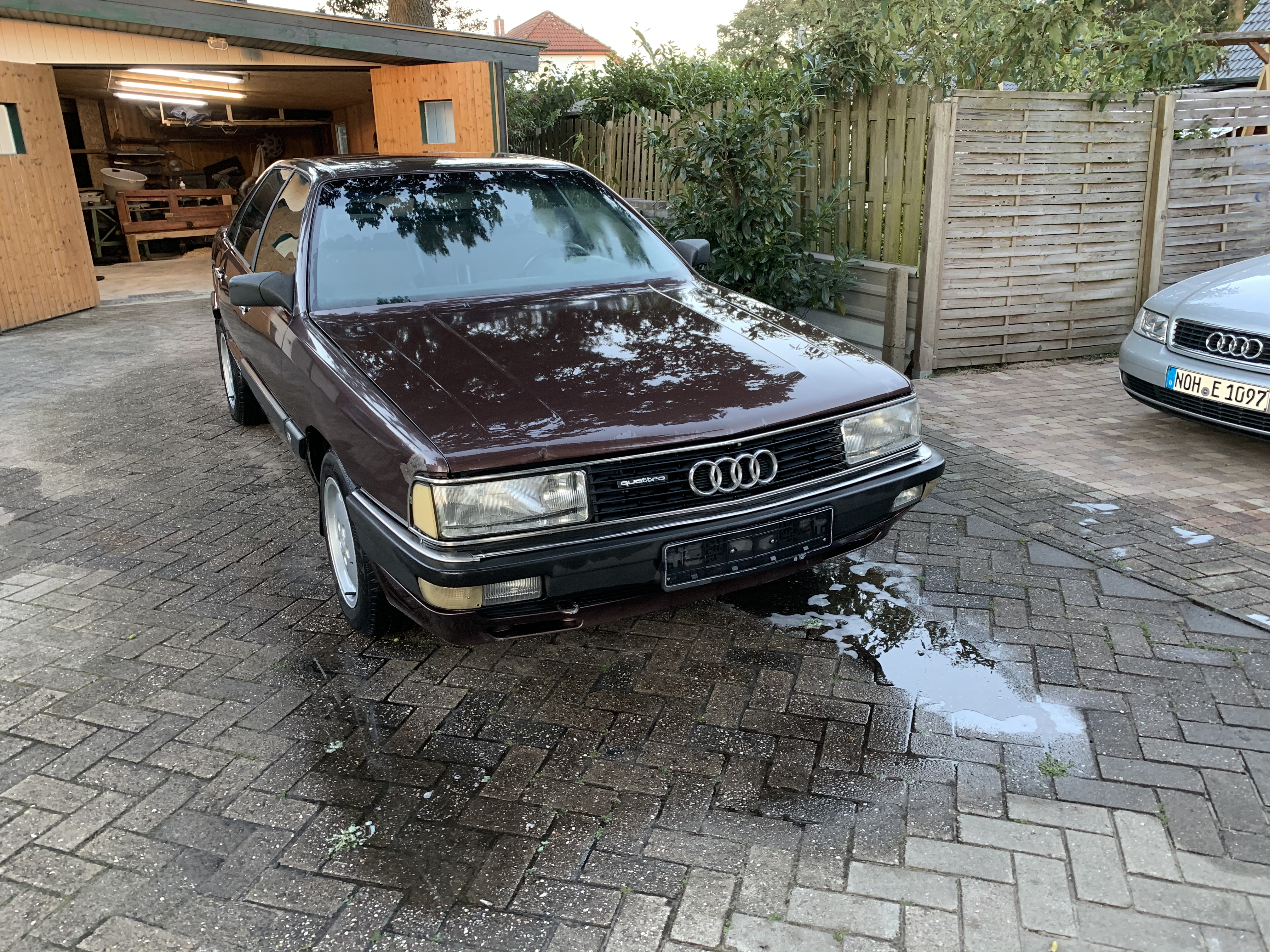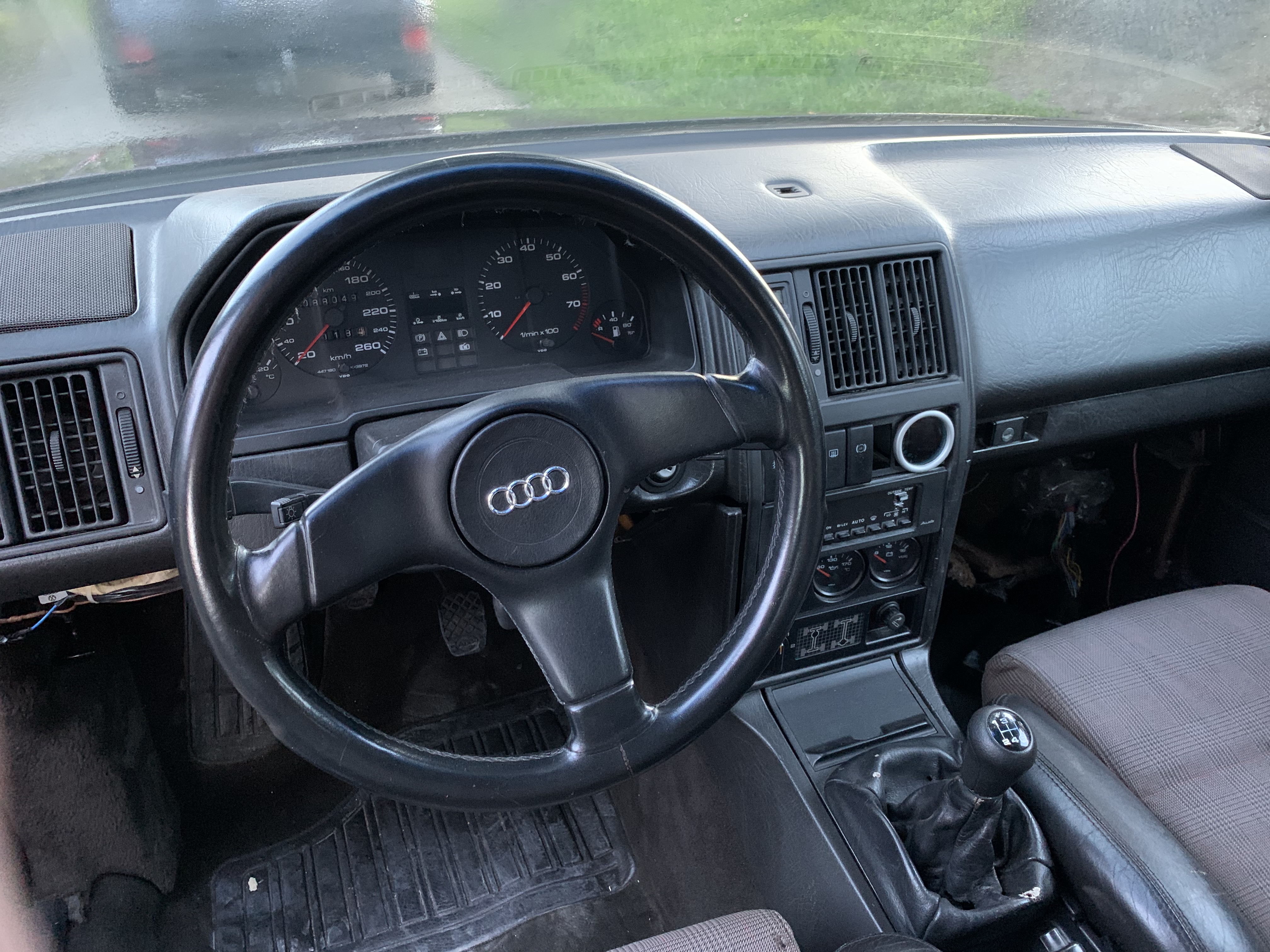 Allgemeiner Zustand: Nicht sehr berauschend von der Technik. Es waren Mäuse im Auto, die ein bisschen was angeknabbert haben. Halb so wild. Der Schaden am Heck ist wieder hinzukriegen. Mit einem Gummihammer 10 Minuten bearbeitet sieht alles schon wieder viel besser aus. Der Klarlack auf dem Dach und der Lack allgemein an der Unfallstelle ist hinüber. Der Rest sieht erstaunlich gut aus. Dann wirds aber langsam kritischer. Die Holländer meinten eine Ladedruckanzeige und Zusatzinstrumente von einem Coupe reinbasteln zu müssen. Auch ein komplett verbasteltes Radiosystem mit Verstärker schändet den Innenraum. Das fliegt alles raus! Abgesehen von hängenden Dachhimmel ist der Innenzustand sonst recht gut. Leder an den Wanden etwas mitgenommen aber alles noch vertretbar.