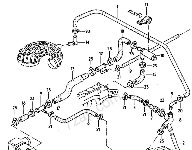 3. Diverse lose Kabel und Basteleien: Überall im Motorraum liegen lost Kabel, der ganze Wischwasserbehälter fehlt genau wie die gesamte Kühleinheit der Einspritzdüsen. Das Ventil N75 Lag lose bei und ich finde nichtmal den Stecker auf den er gehört, von den Leitungen mal ganz zu schweigen. Das Ladedrucksystem ist eine Katastrophe. Die Holländer haben sogar versehentlich die Leitung vom Wischwasserbehälter zu den Düsen auf der Motorhaube ans Drucksystem angeschlossen...