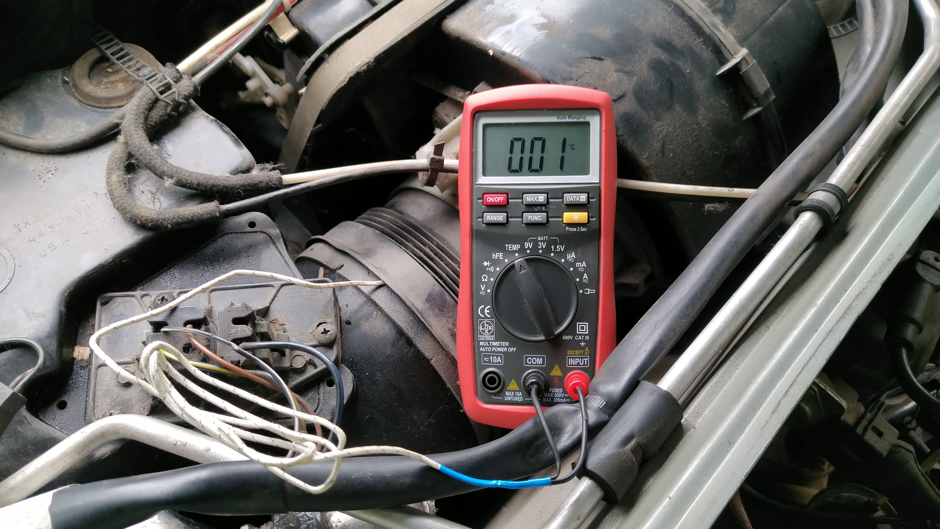 Überhitzungssignal: Korrodierter Multifuzzi-Anschluss, Stecker abgezogen (Geber lahmgelegt)