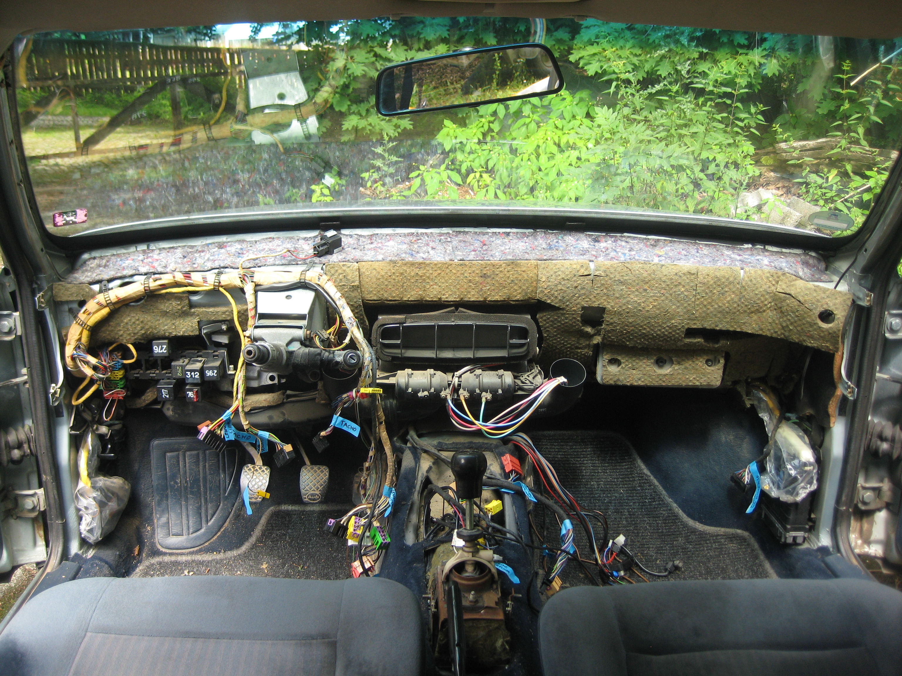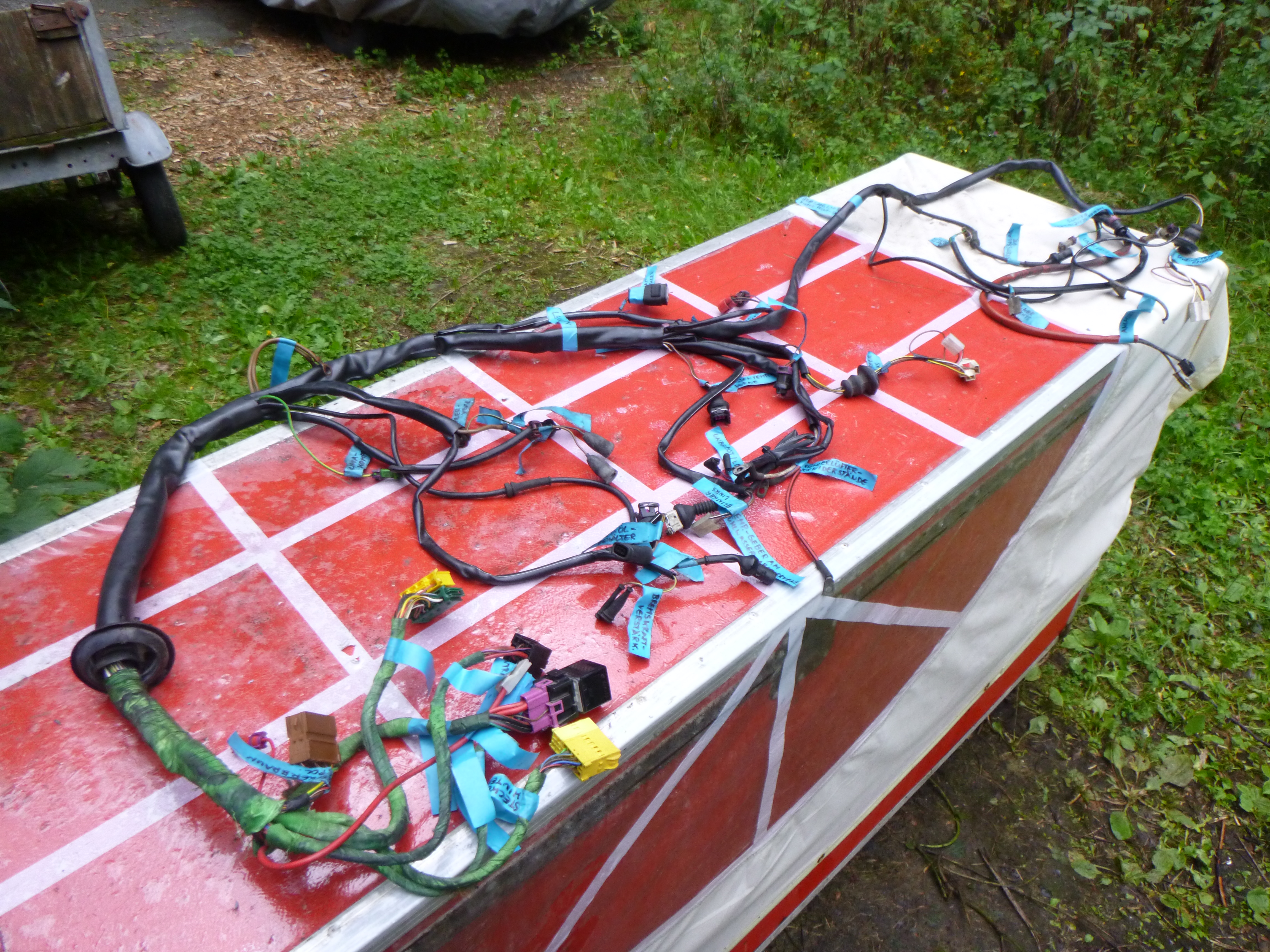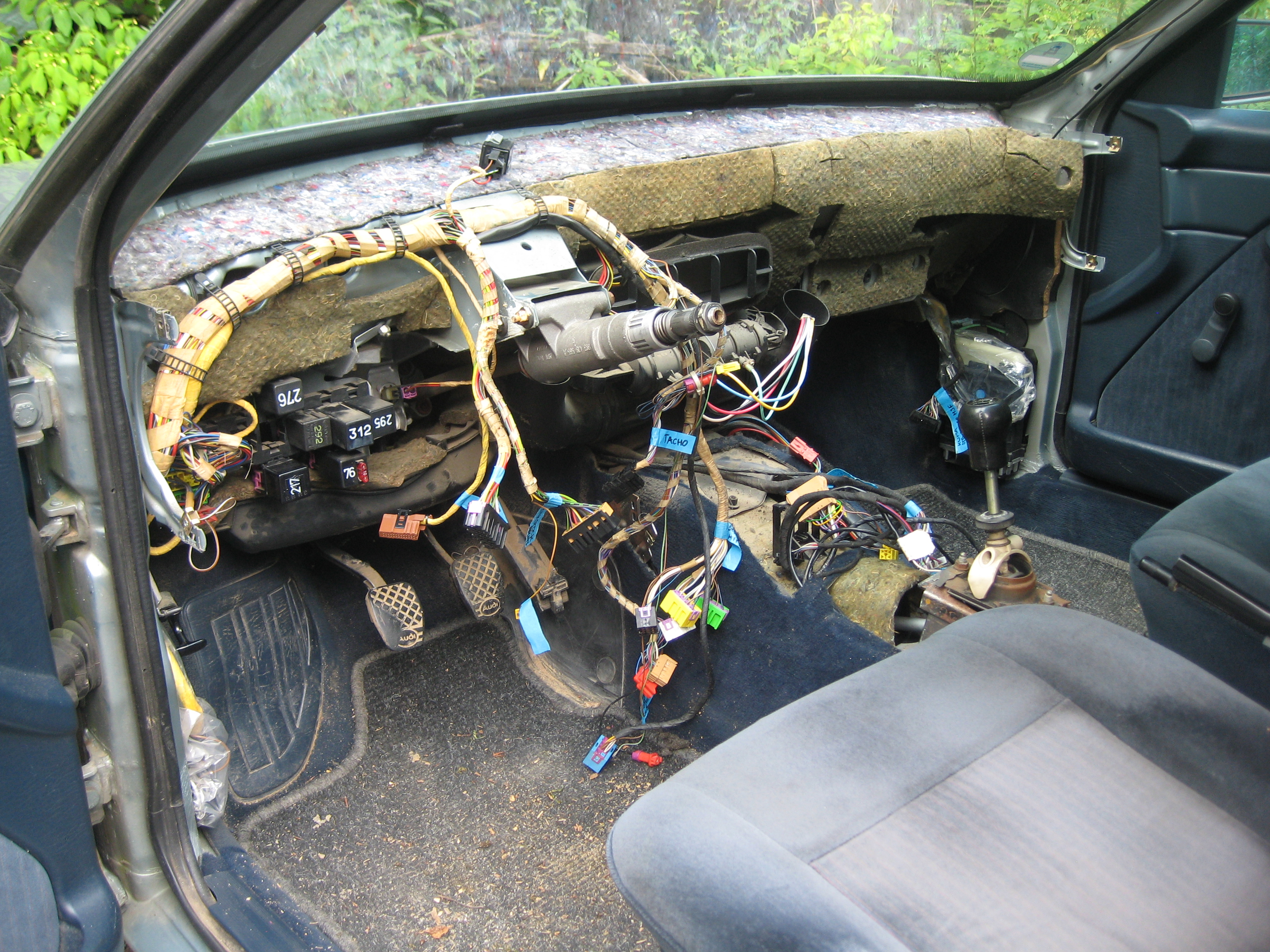 3. Schritt: Armaturenbrett beim Teilespender ausbauen, Kabelbäume beschriften, Details originale Kabelverlegung fotografieren.