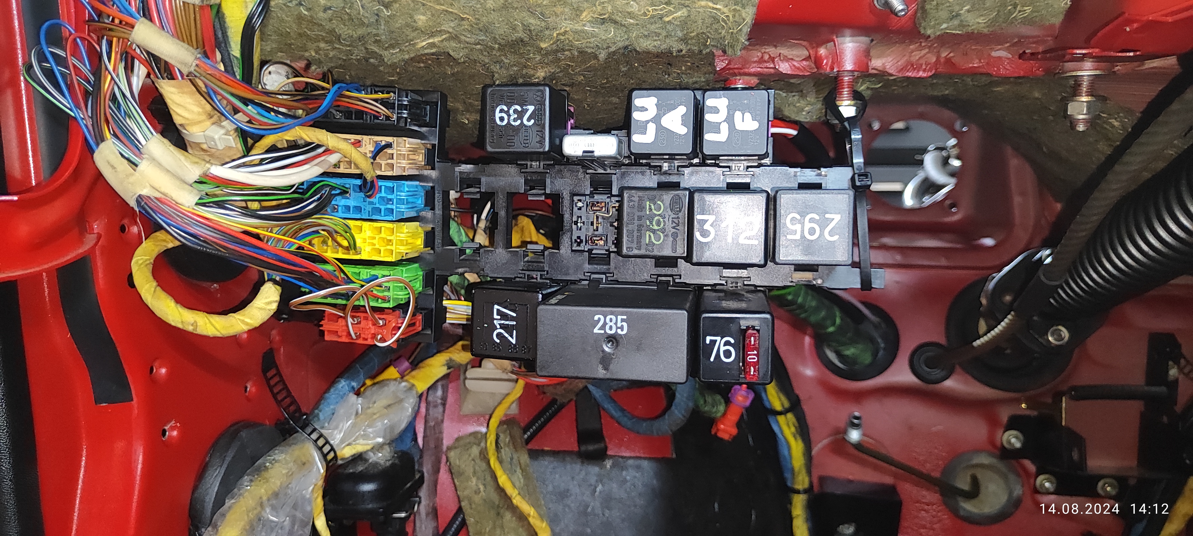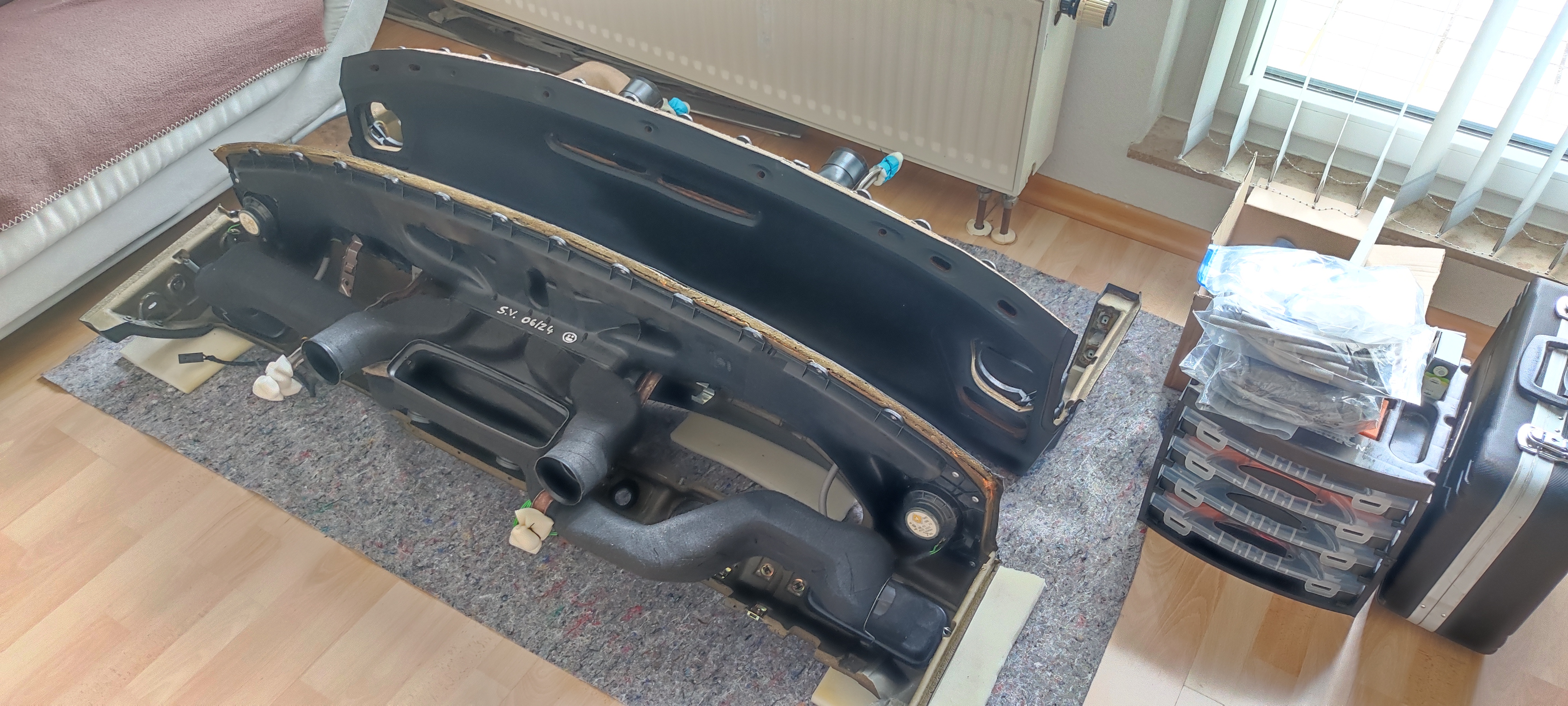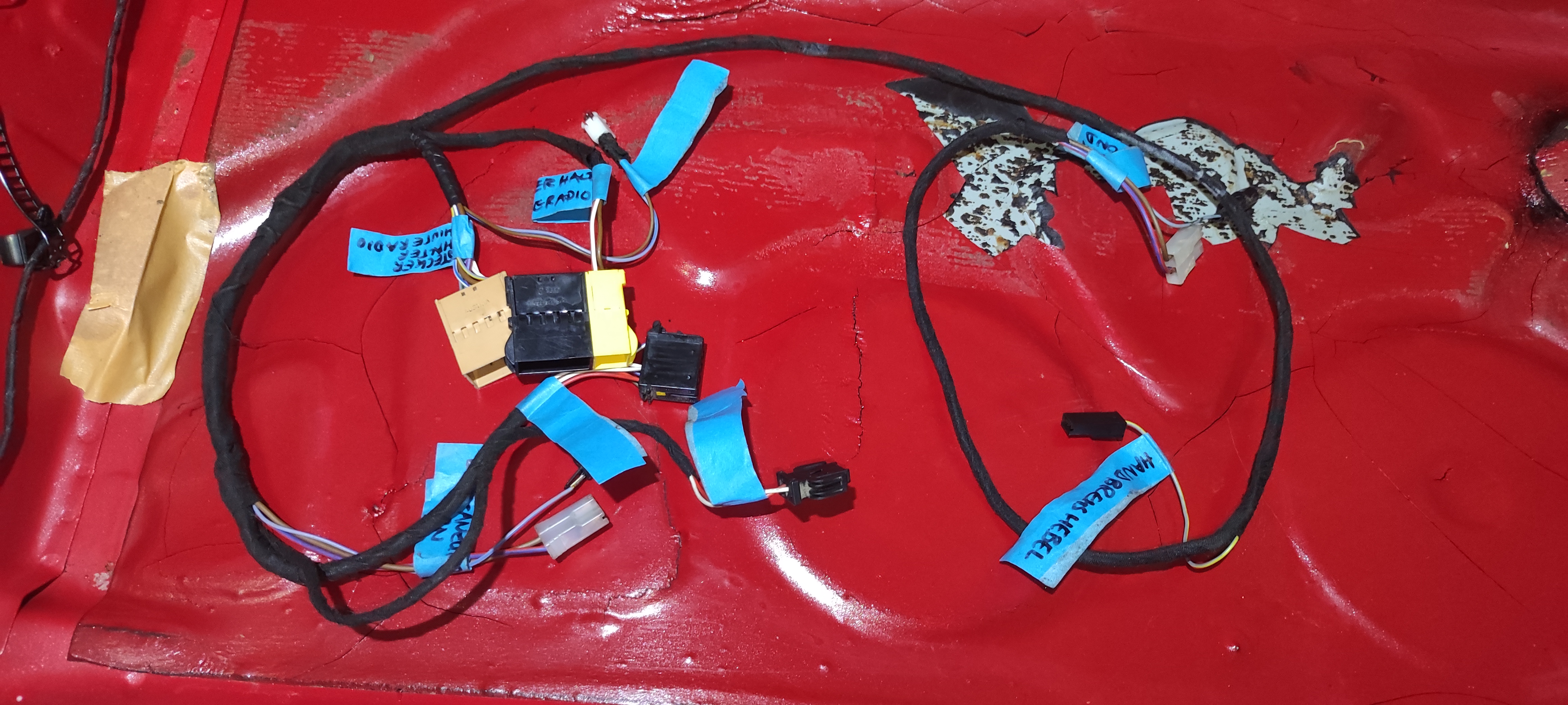 3. Schritt: Armaturenbrett beim Teilespender ausbauen, Kabelbäume beschriften, Details originale Kabelverlegung fotografieren.