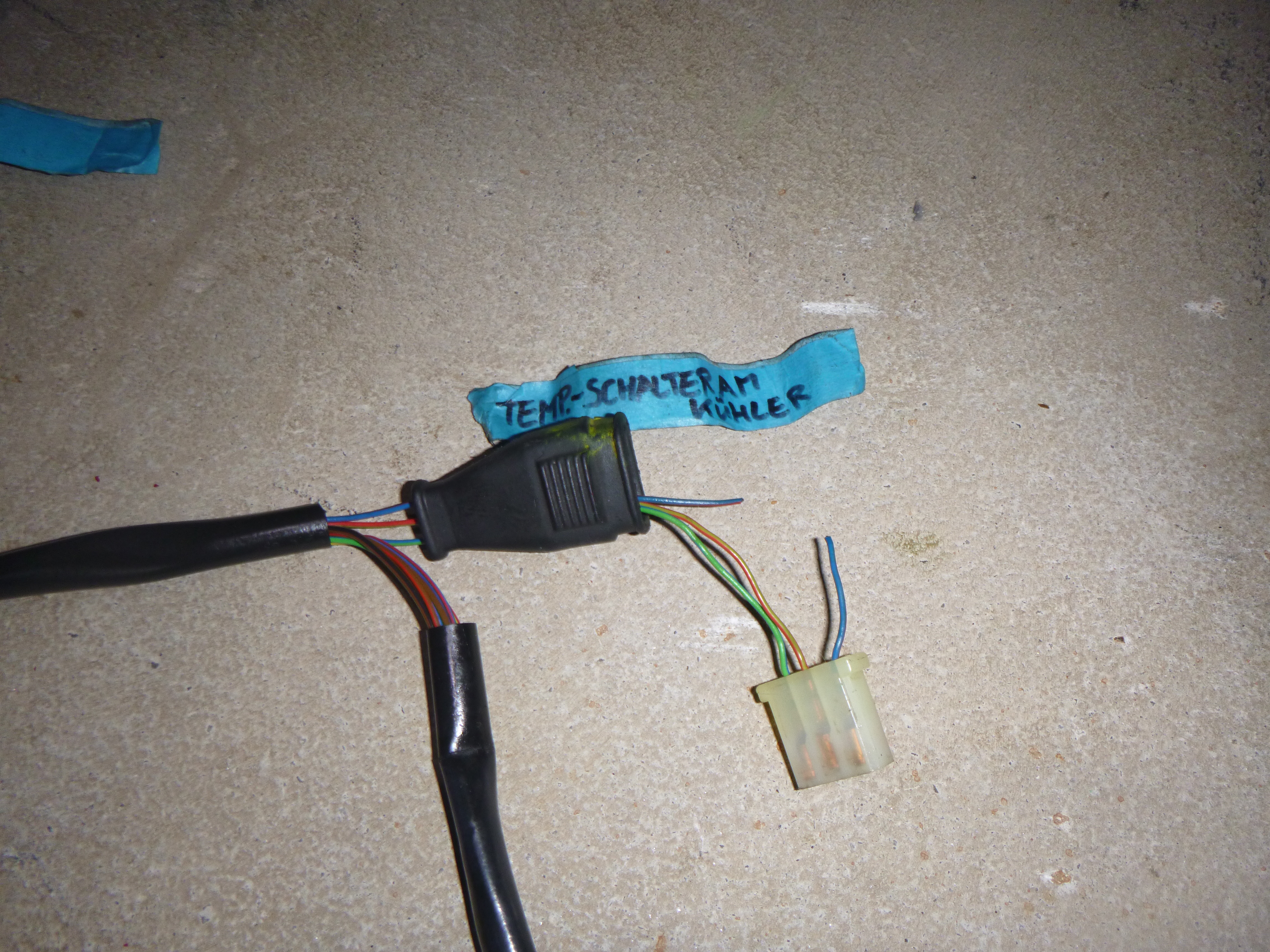 Anschlussstecker für Magnetventil Umluftklappe aus V8-Leitungssatz heraus getrennt