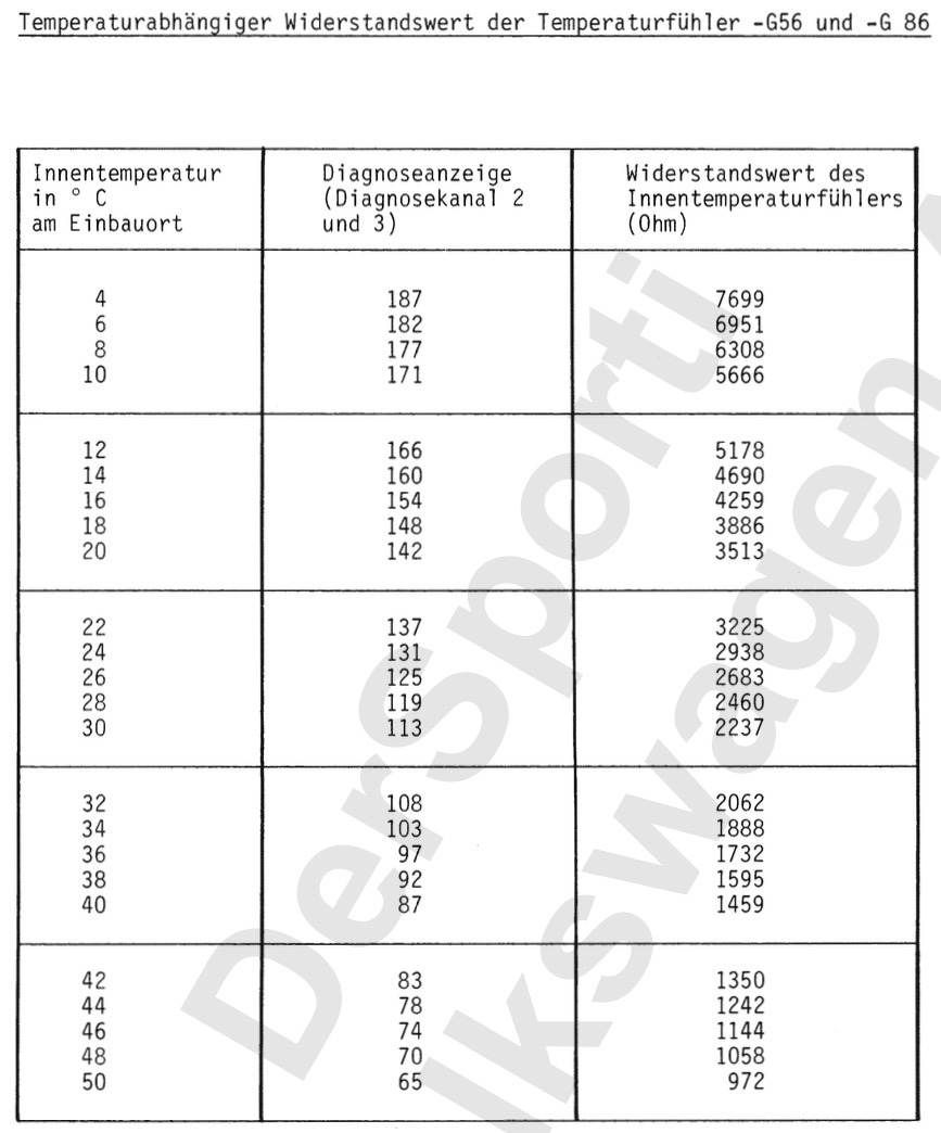 3. Measurement Value of inside temp sensor G56 on instrument panel (Armaturenbrett)