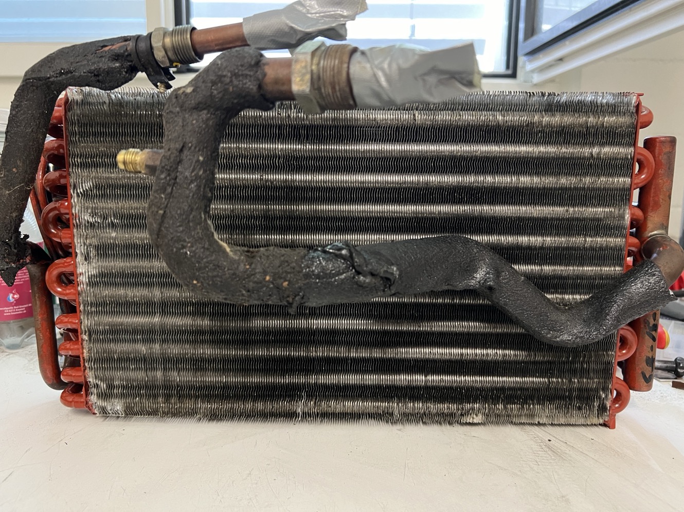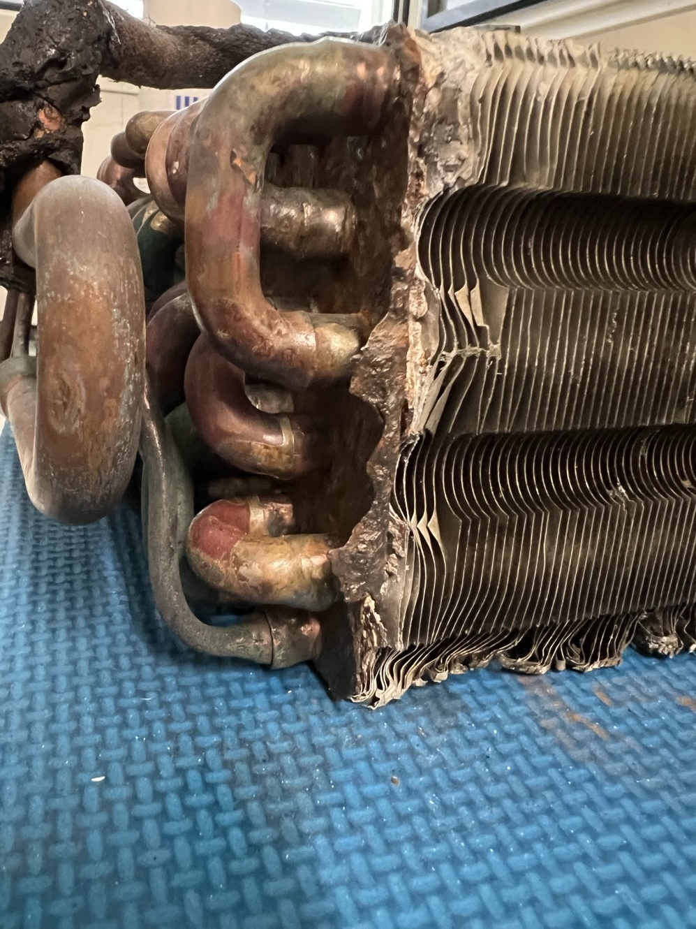 Beim demontieren vom Verdampferkasten kam der nächste böse Überraschung: der Verdampfer hat ins Wasser gestanden (weil der Kondenswasser-Abführschlauch (10 Punten Scrabble) kein Wasser mehr durchliess me dunkt).